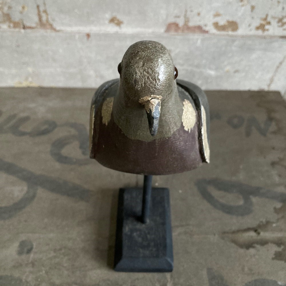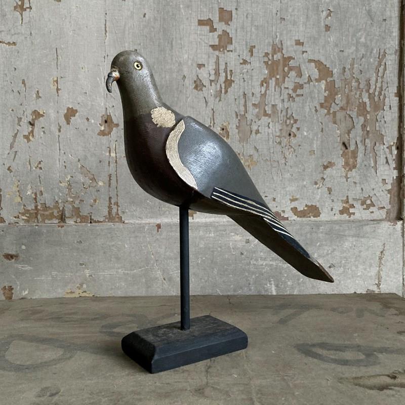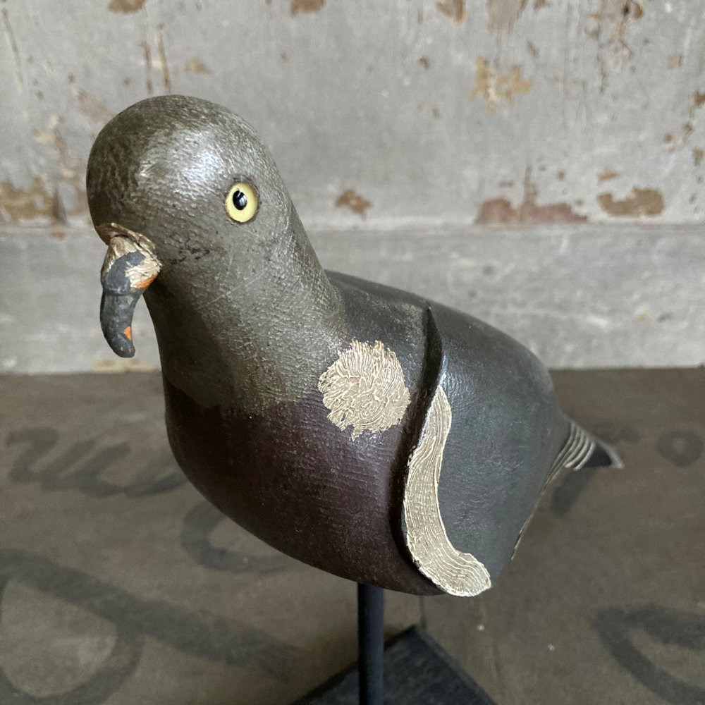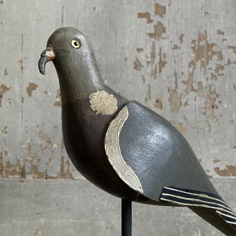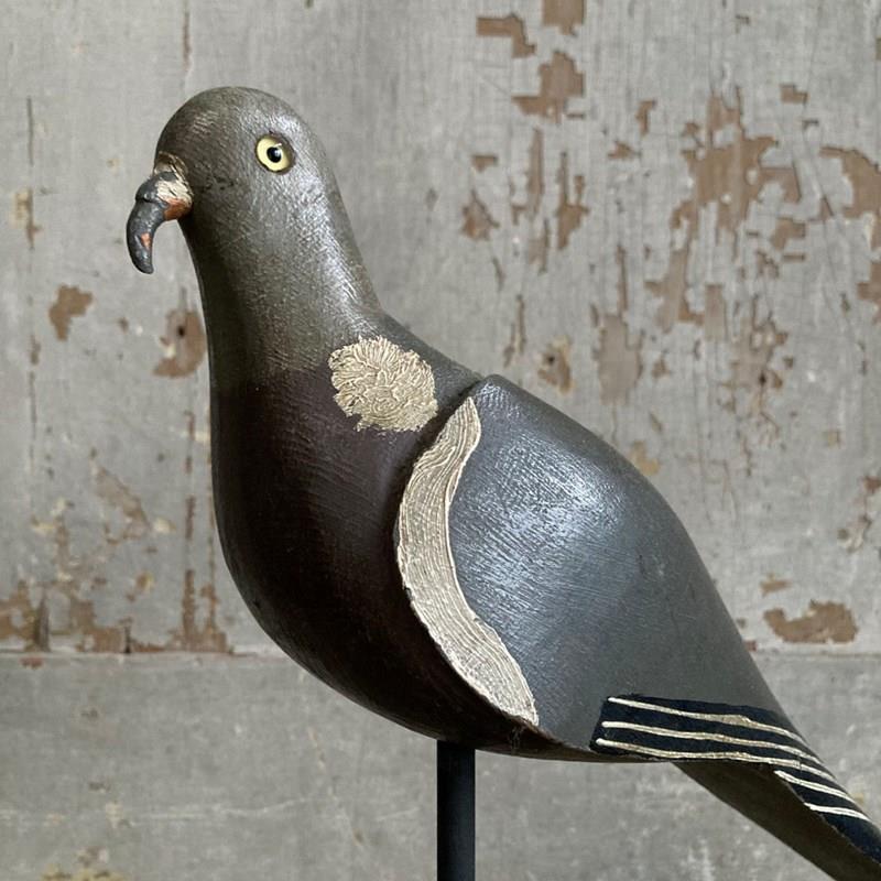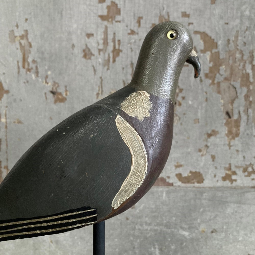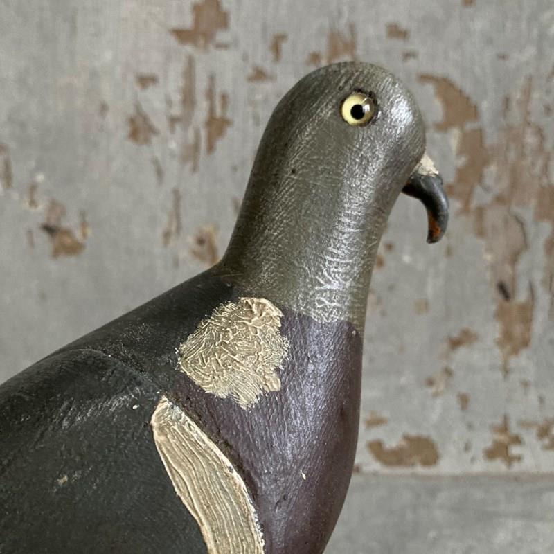 A carved wood pigeon decoy by William Jaggard of Norfolk. In very good condition with the majority of the original paint finish intact. Also, original glass eyes and cast metal beak.