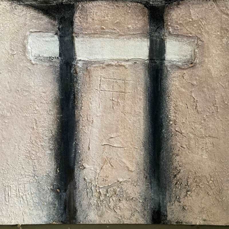 A late 20th c. abstract painting on board. Very textural. Unsigned. Sourced in Cornwall.