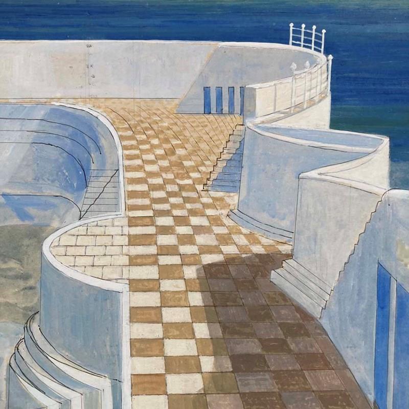 Victor Bramley (1934–2014) - Art Deco Lido (Penzance) Watercolour