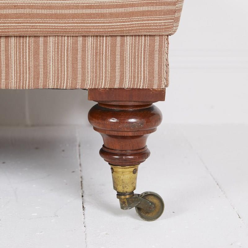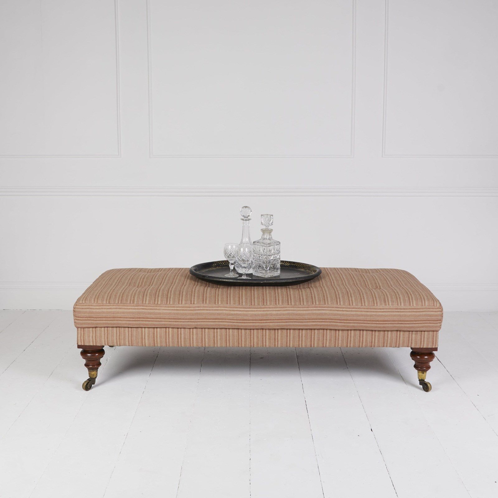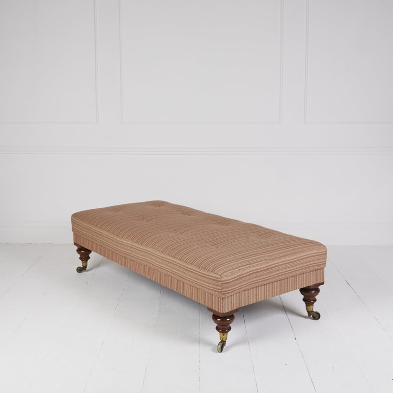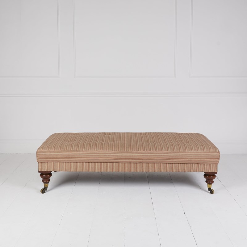 Adapted antique Victorian daybed ottoman stool covered in Rose Tarlow ticking