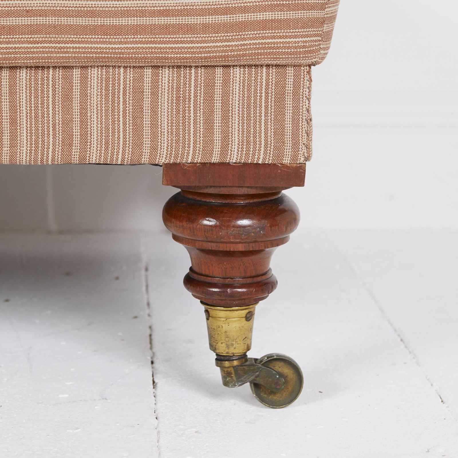 standing on English walnut legs and gilt cope castors with a sprung horse hair seat.