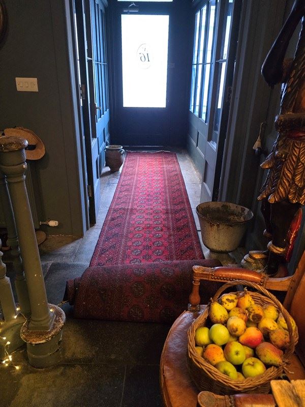 Fresh in, possibly the largest Antique Afghan? runner I have ever owned, approx 24 feet, in length. Purchased privately in Devon today. Do you know anyone with a nice period house and very long hallways/corridors? Good original condition. So reasonably priced it's embarrassing.
