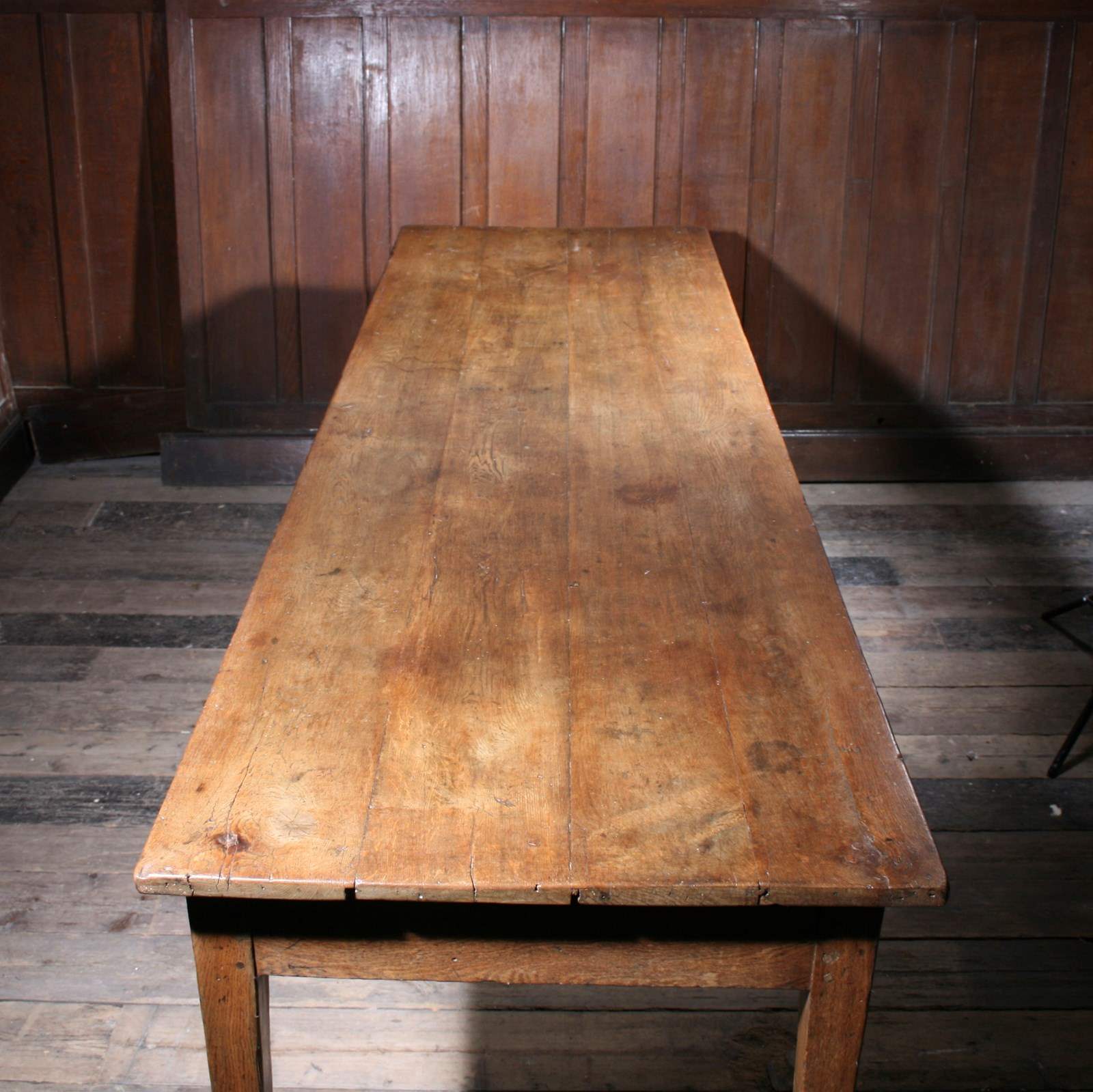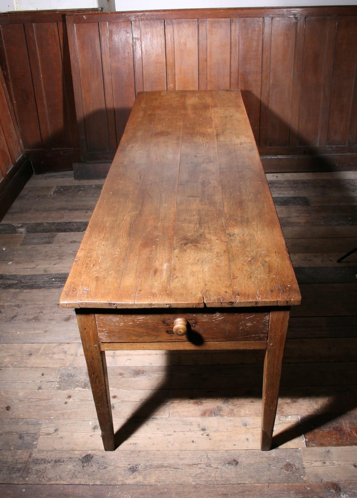 Large Oak Farmhouse Table dating from the early 19th century. The table is in very good condition and has a lovely patina. Perfect sitting height and knee clearance.