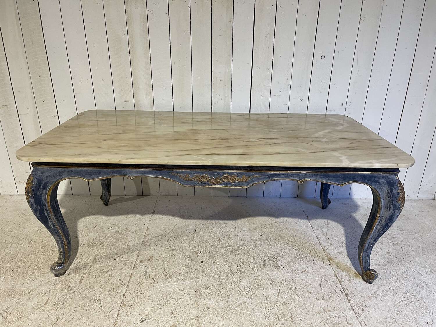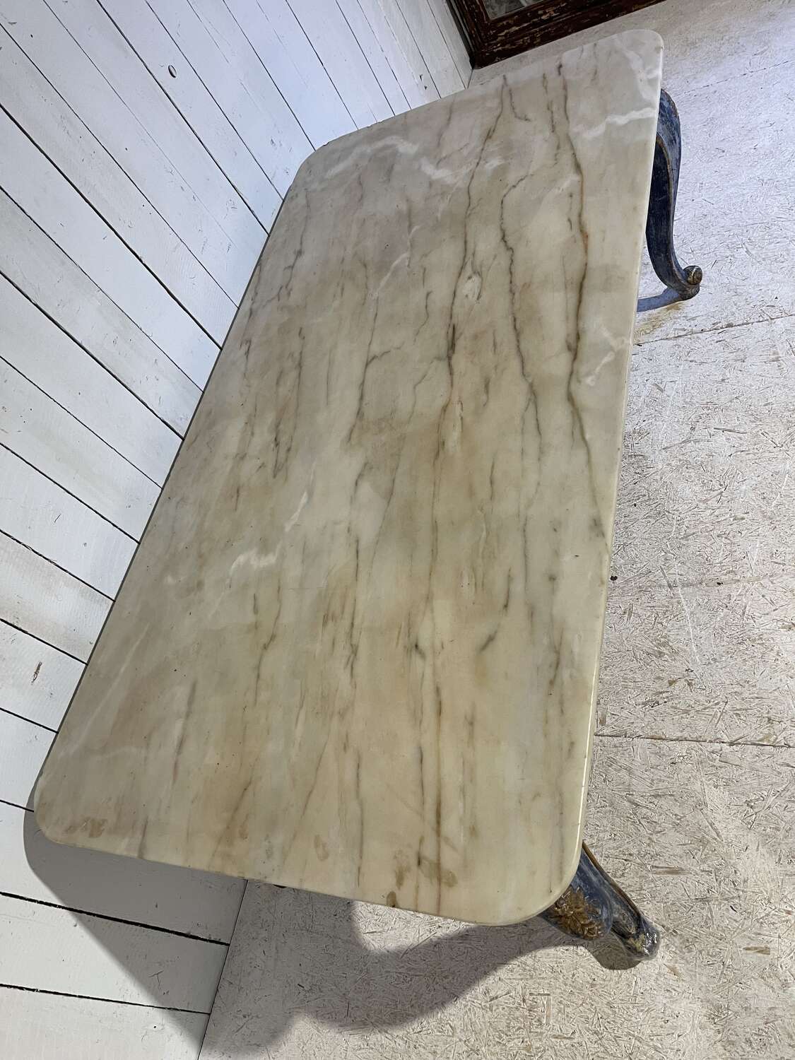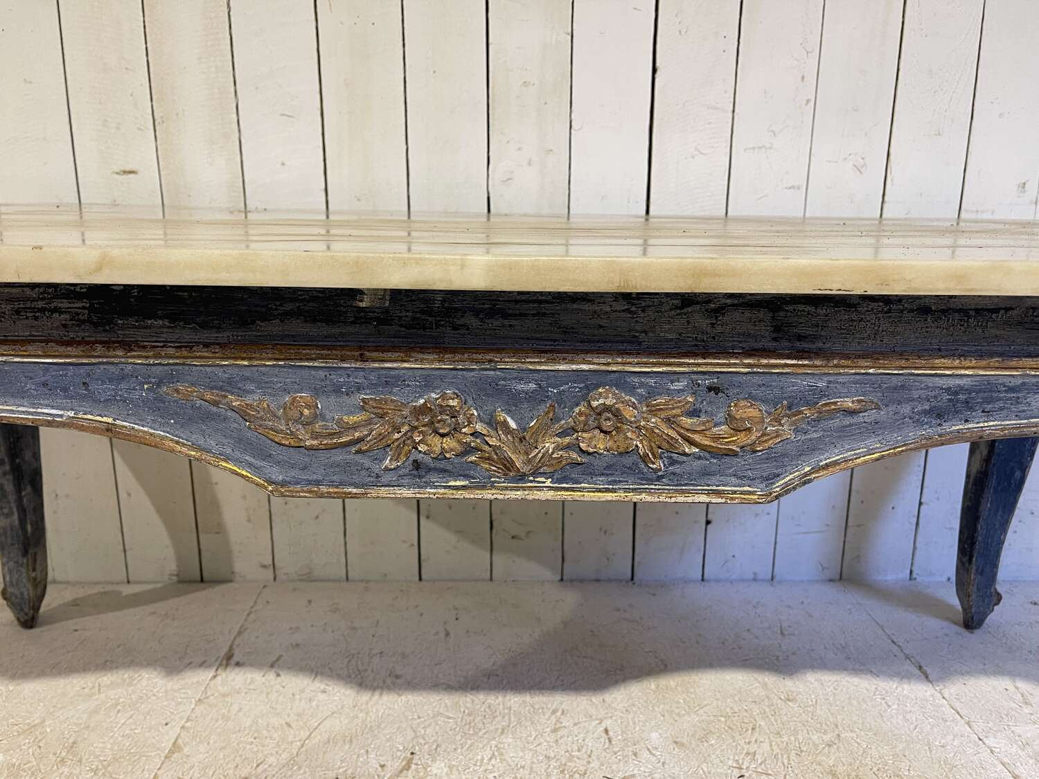 19th century Italian cabriole leg, marble top, centre table with painted base. C 1890