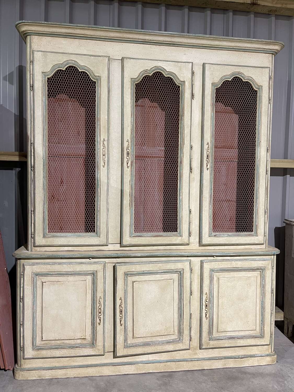 A French painted, three door bibliotheque. Provence circa 1900