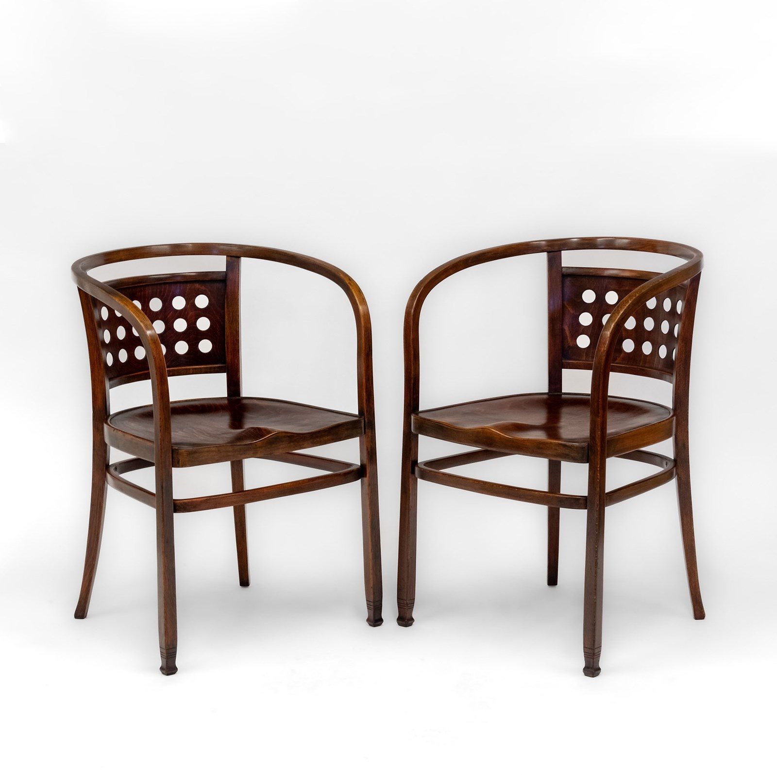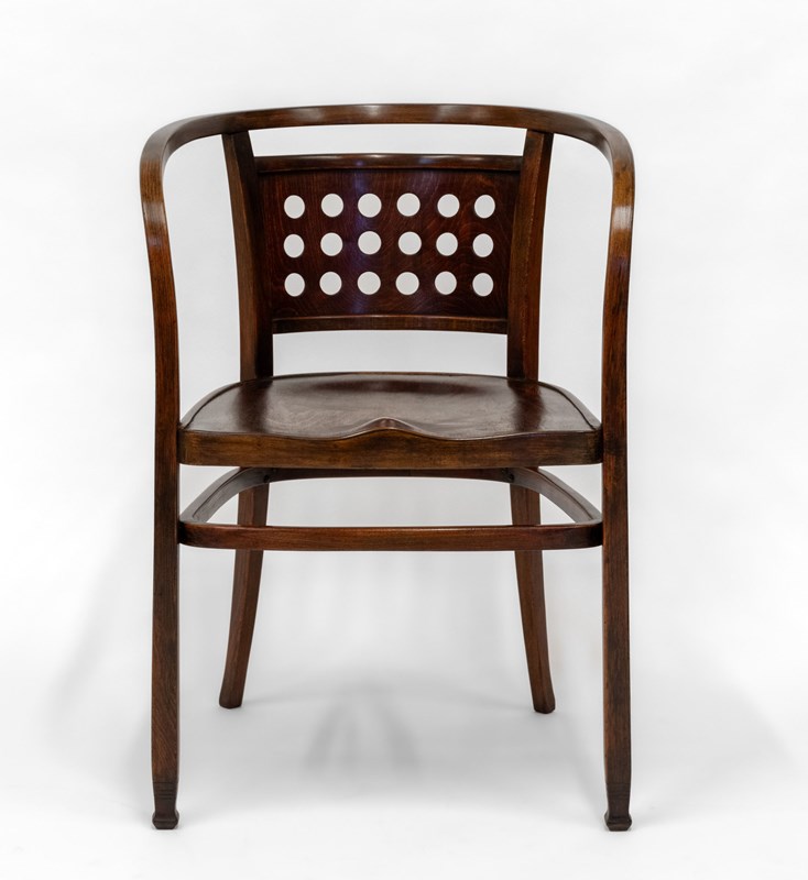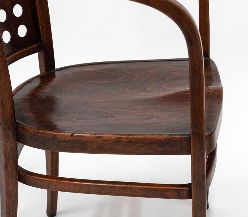 A stylishly simple design by the father of the Secessionist movement, the beech bentwood having a back pierced with circular apertures.