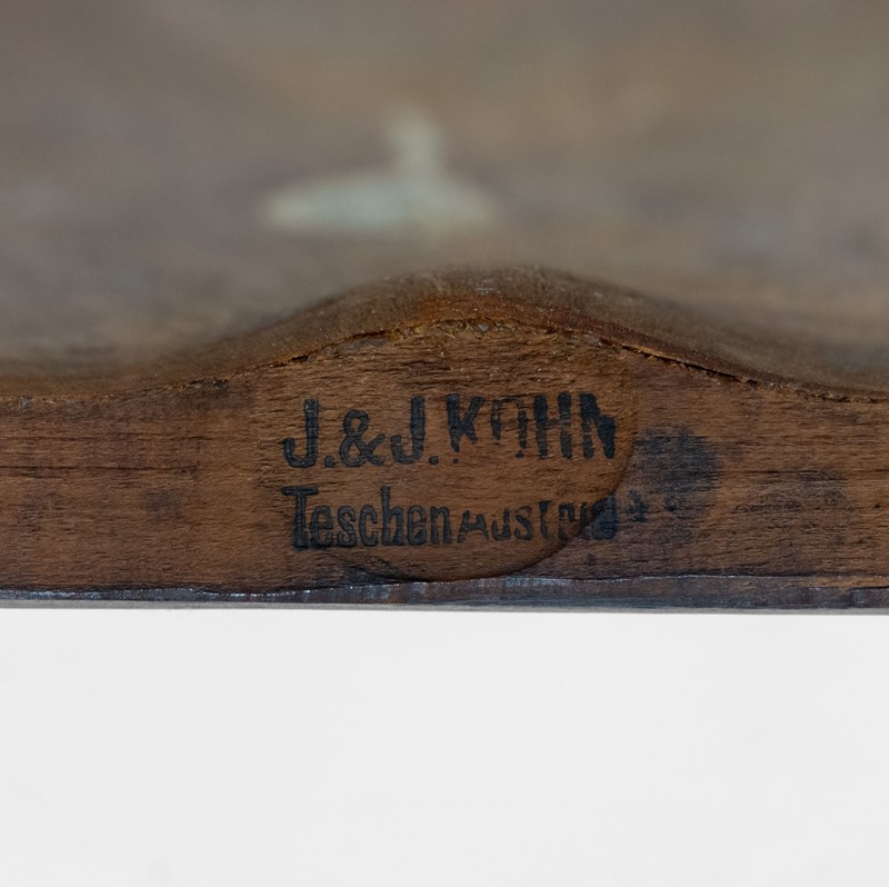 Manufactured by Jacob & Josef Kohn. Stamped J & J Kohn - Teschen - Austria, along with J. & J. Kohn paper label.