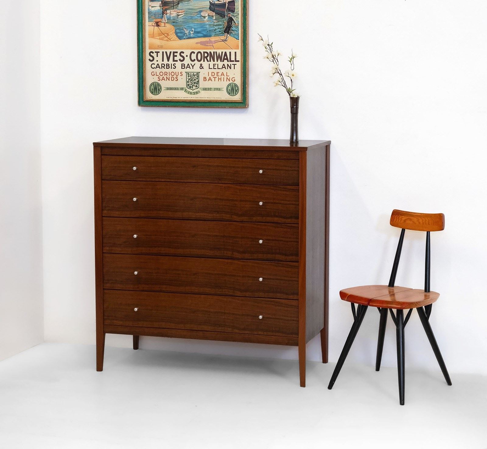 Sleek Gordon Russell Chest Of Drawers In Indian Laurel Circa 1960