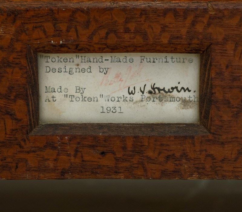 A silky oak side cabinet designed by Betty Joel and made by W V Irwin at Token Works. Dated 1931.