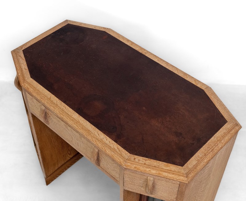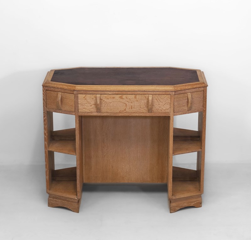 Art Deco Heals Limed Oak Octagonal Writing Desk Double Sided Book Circa 1930