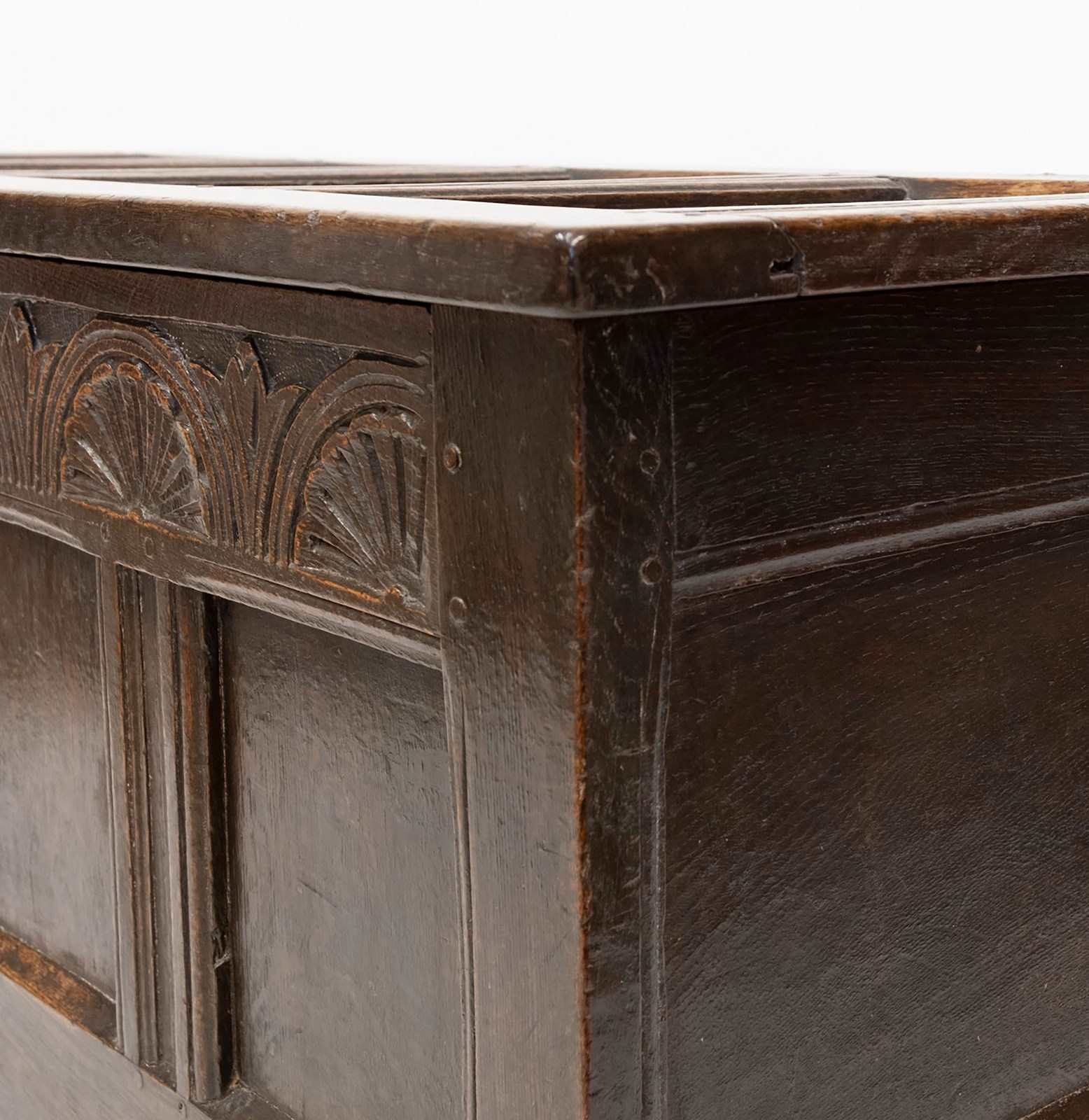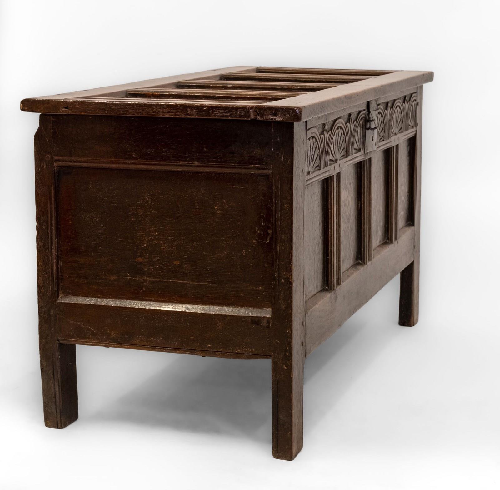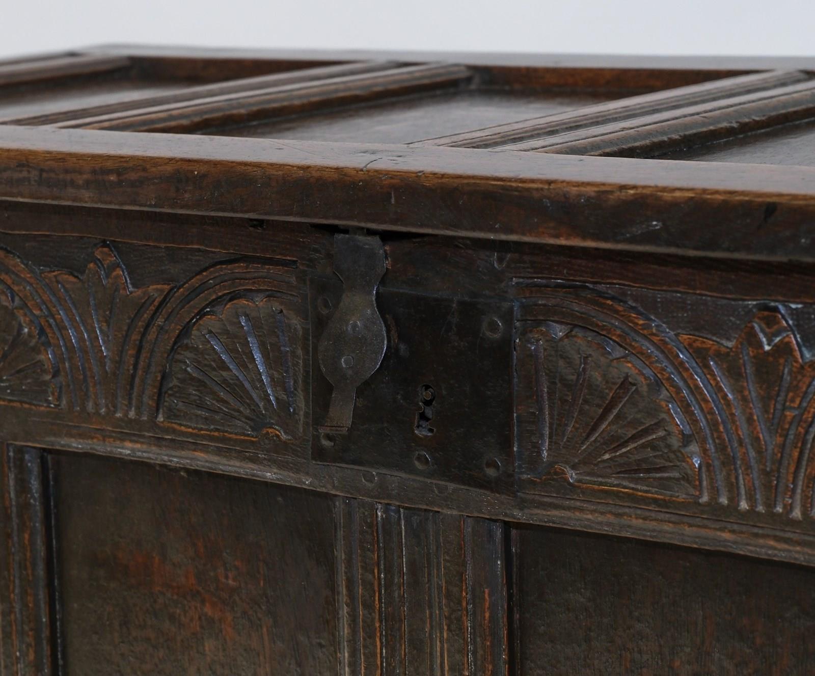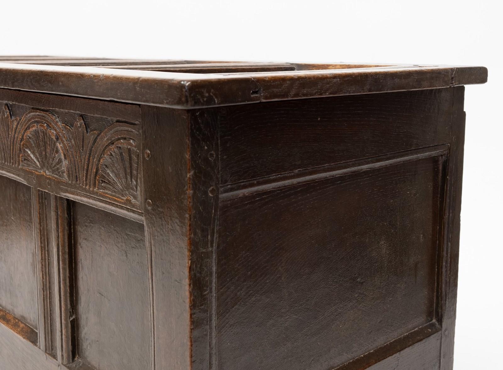 Late 17th‑century English oak coffer. Charles II period. Circa 1680.