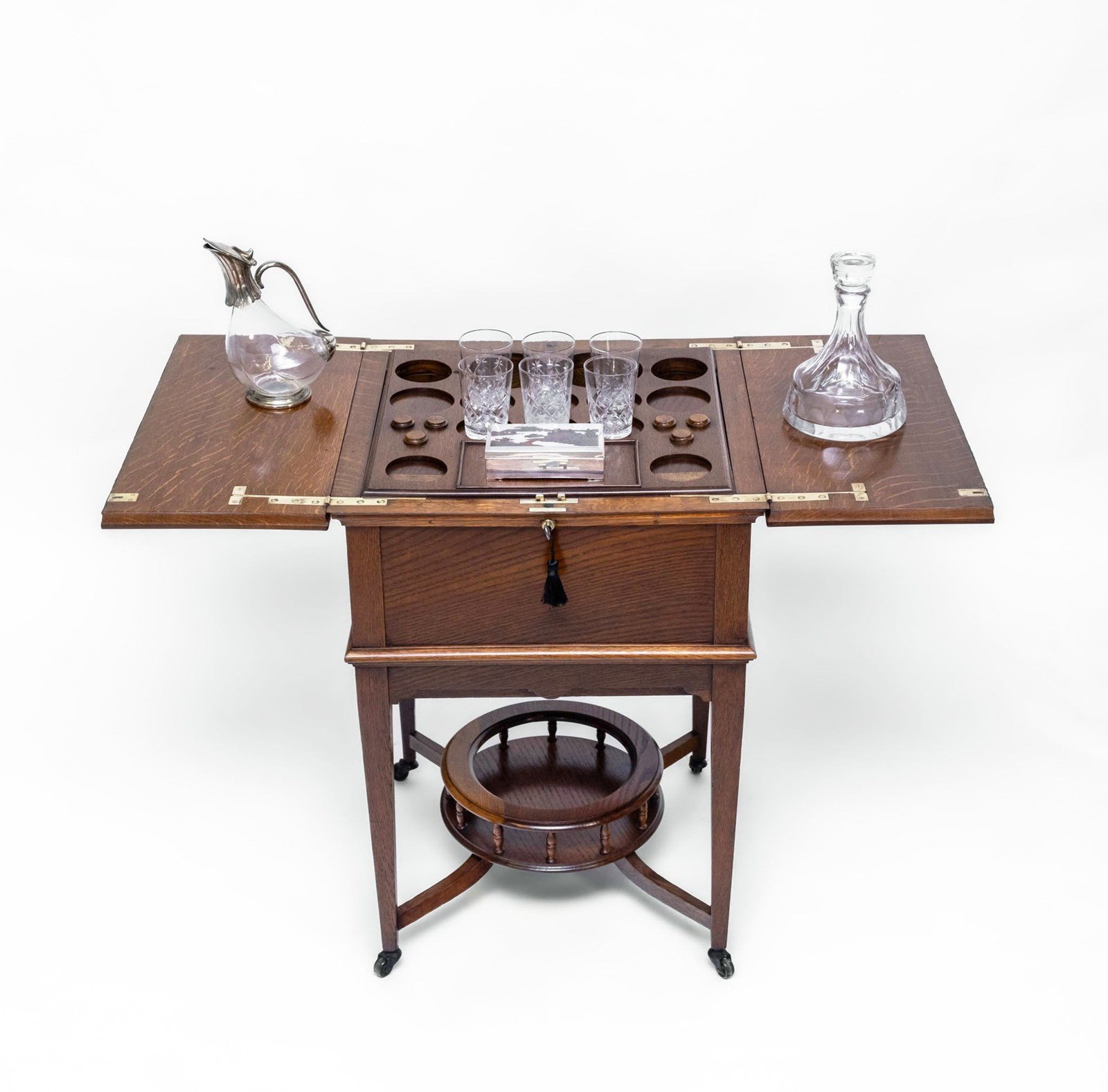 Antique Edwardian Oak Metamorphic Rise & Fall Drinks Cocktail Cabinet Bar