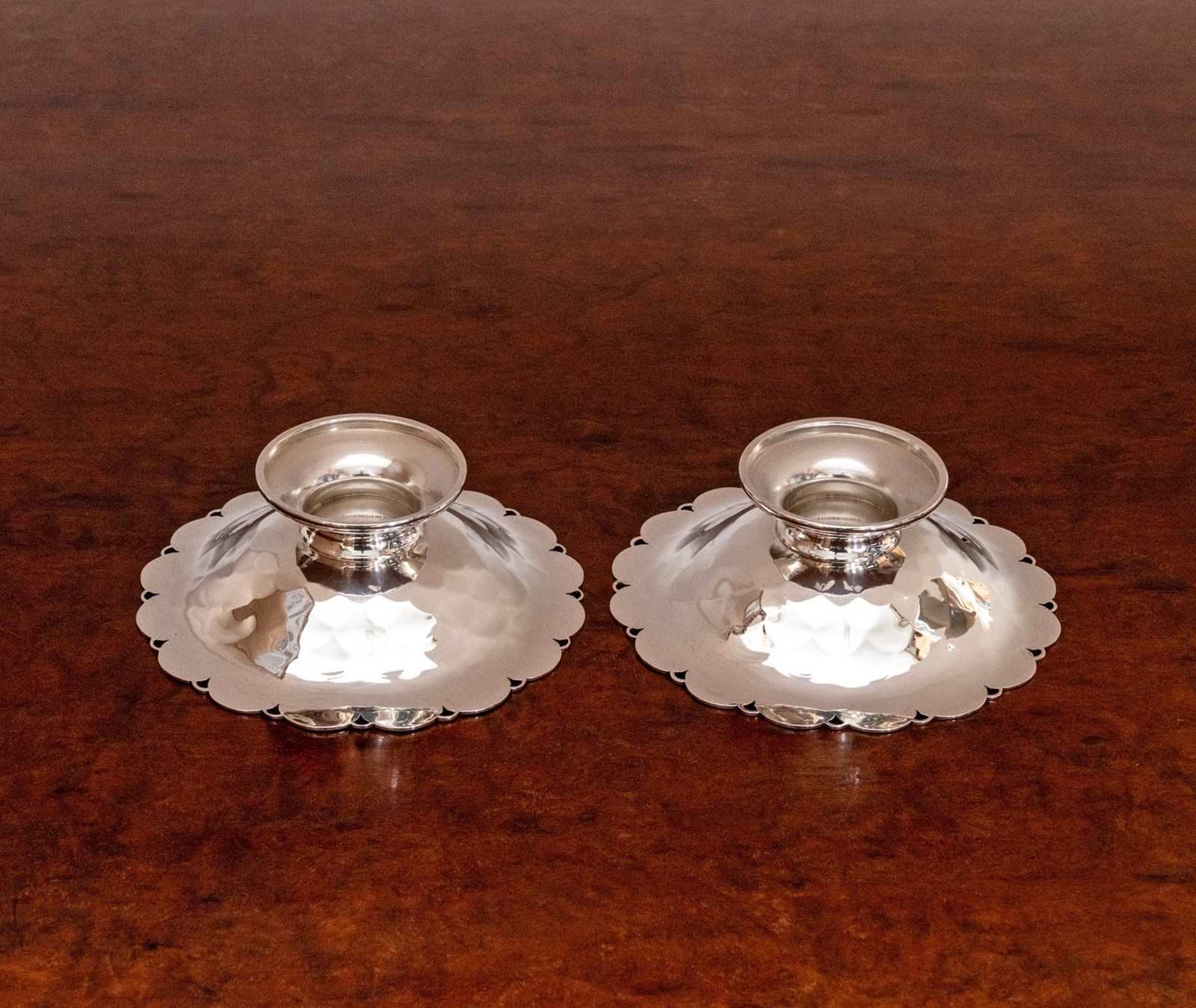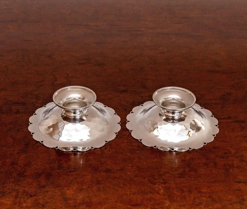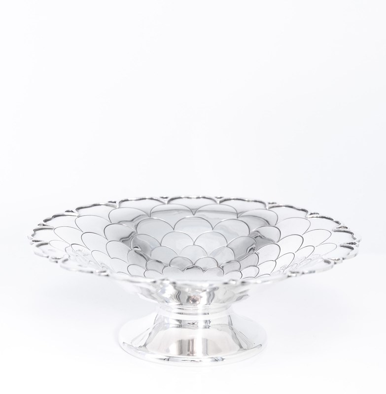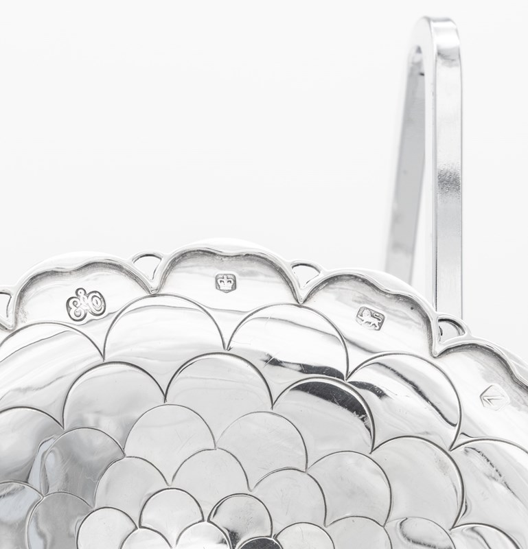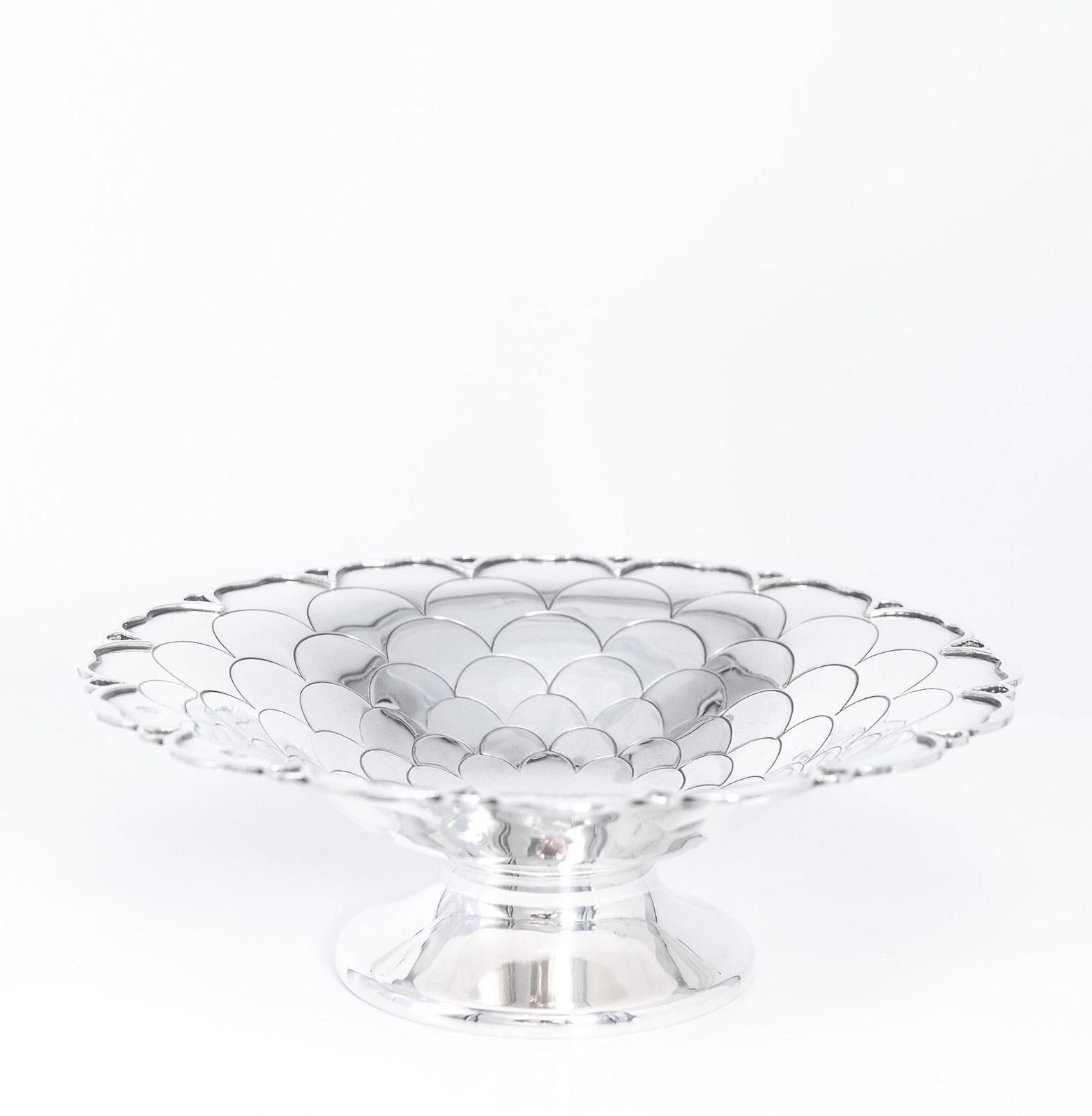 The pair are in very good condition, showing some light surface marks and some rubbing to the hallmarks. The fish scale pattern very much giving an Art Deco feel to the dishes.