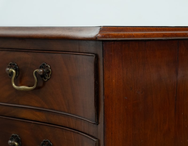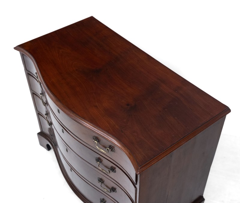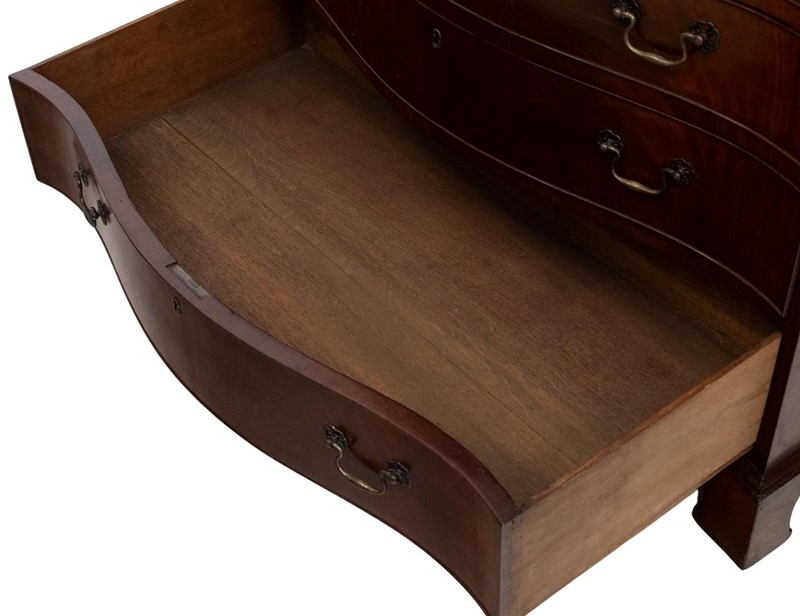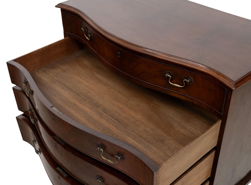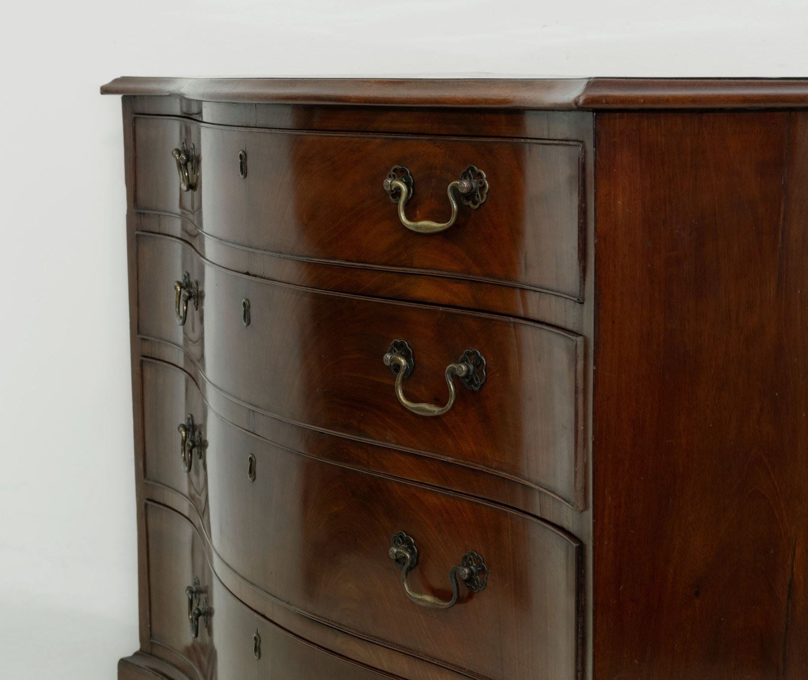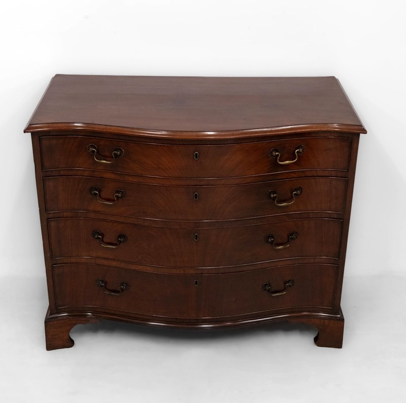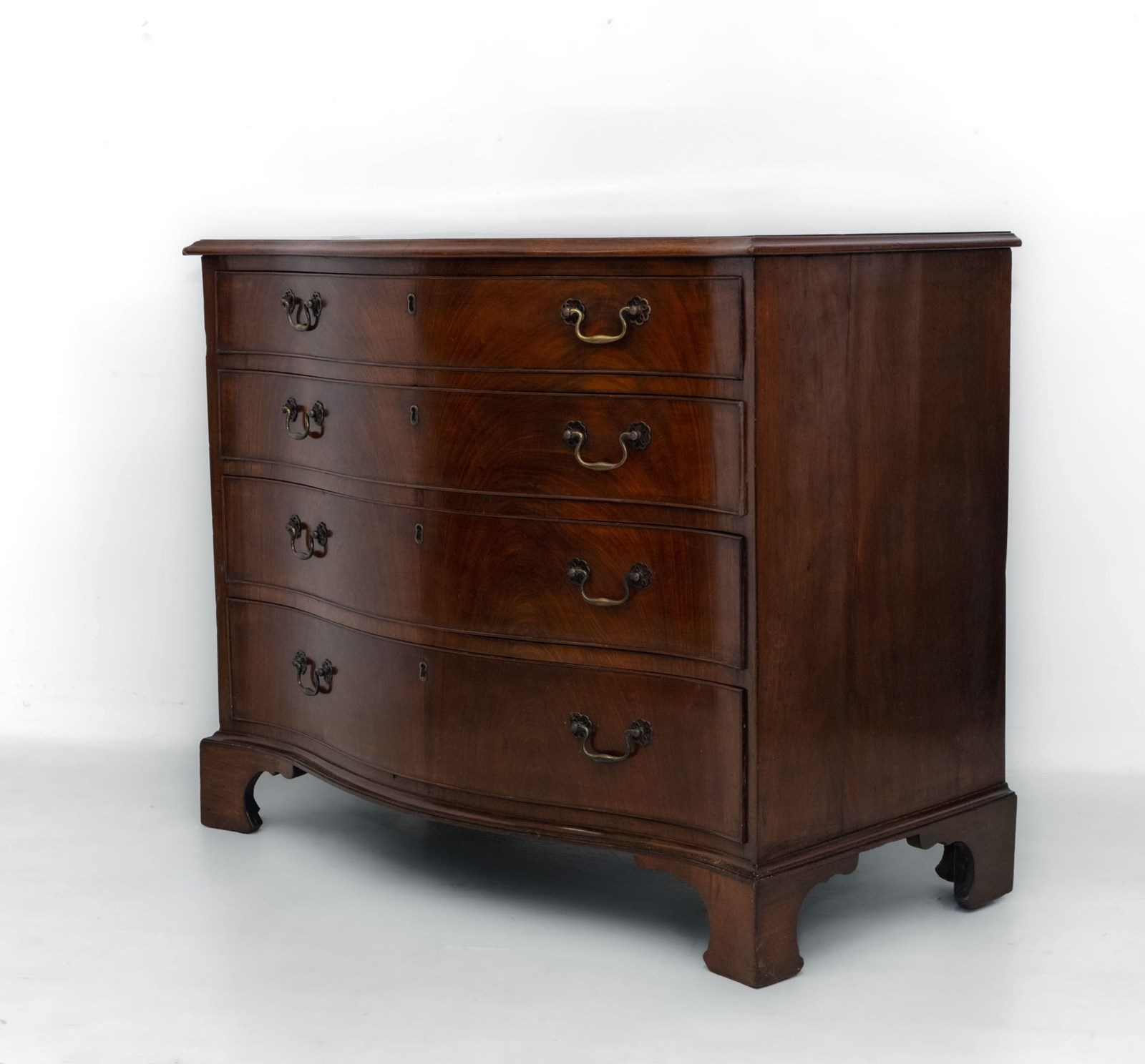 A late‑18th‑century George III mahogany serpentine chest of four graduated drawers. Circa 1790.
