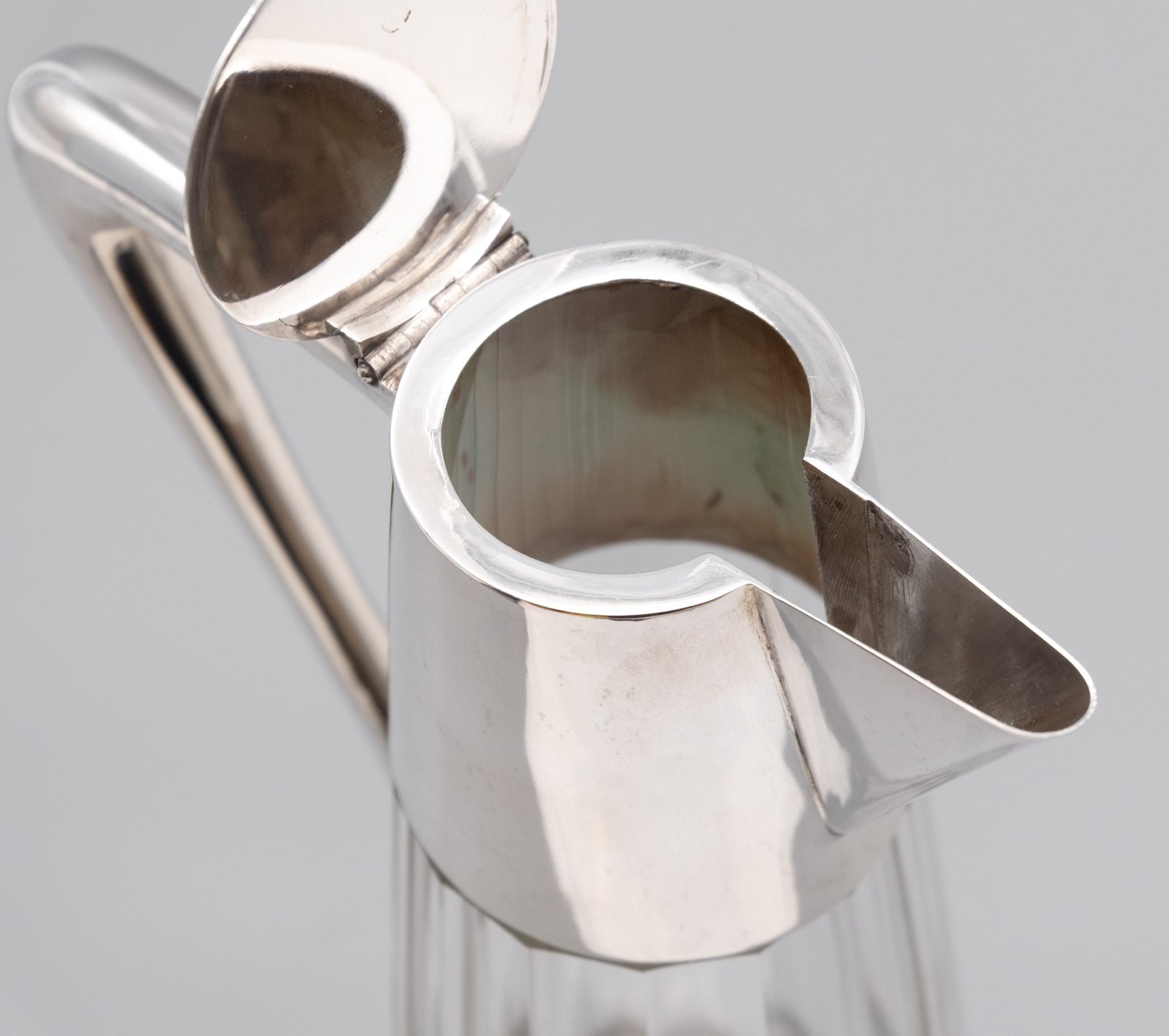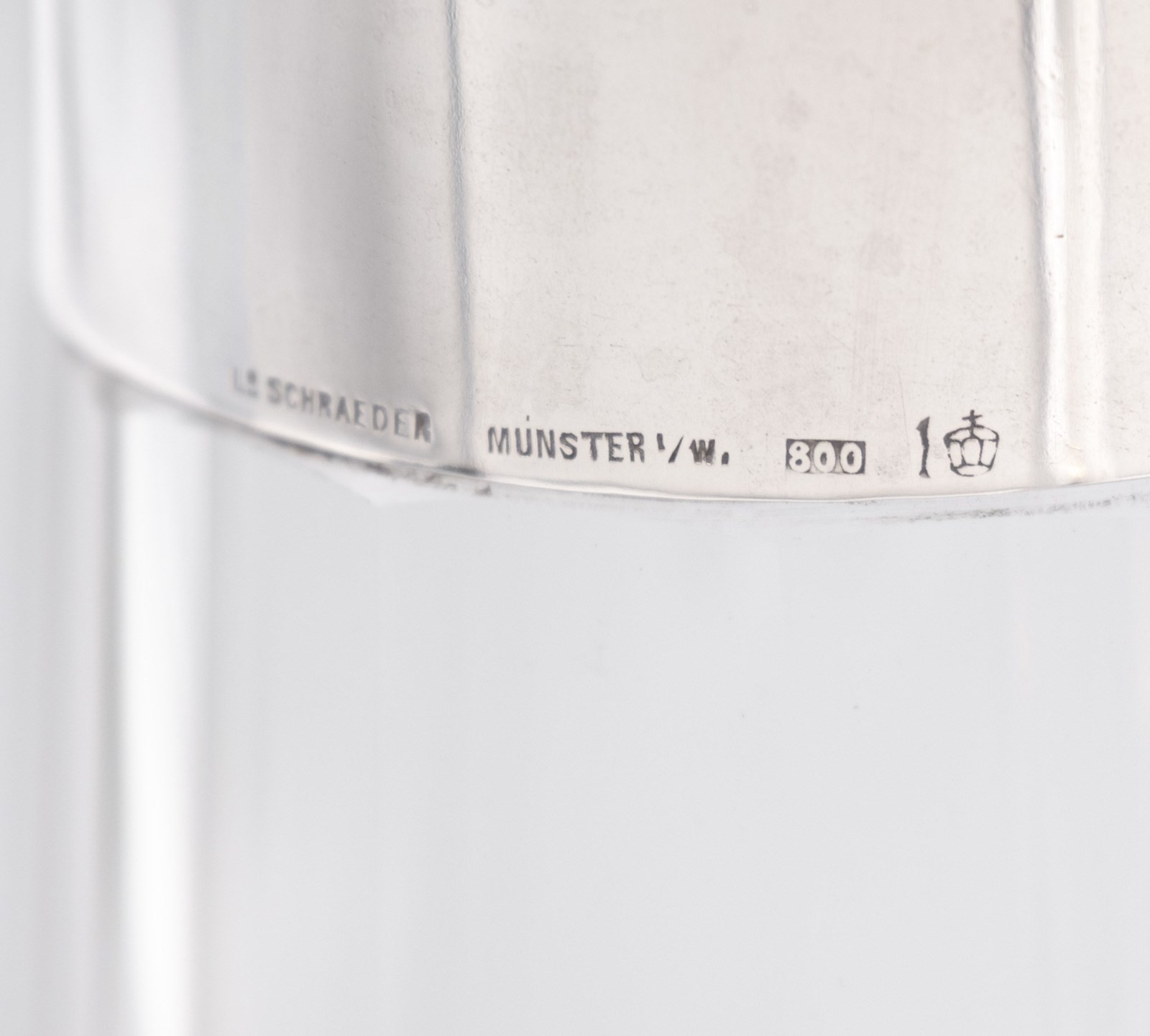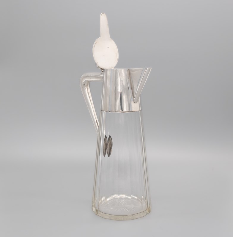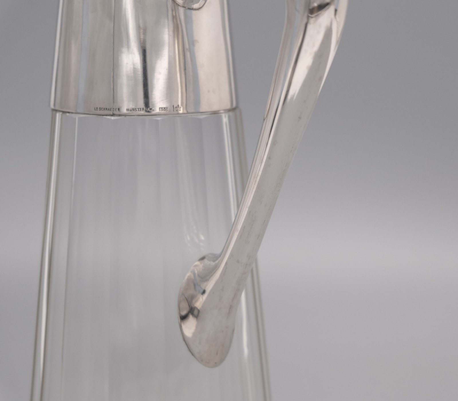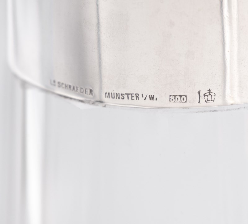 German Arts & Crafts 800 Silver & Glass Claret Jug Decanter Schraeder Münster