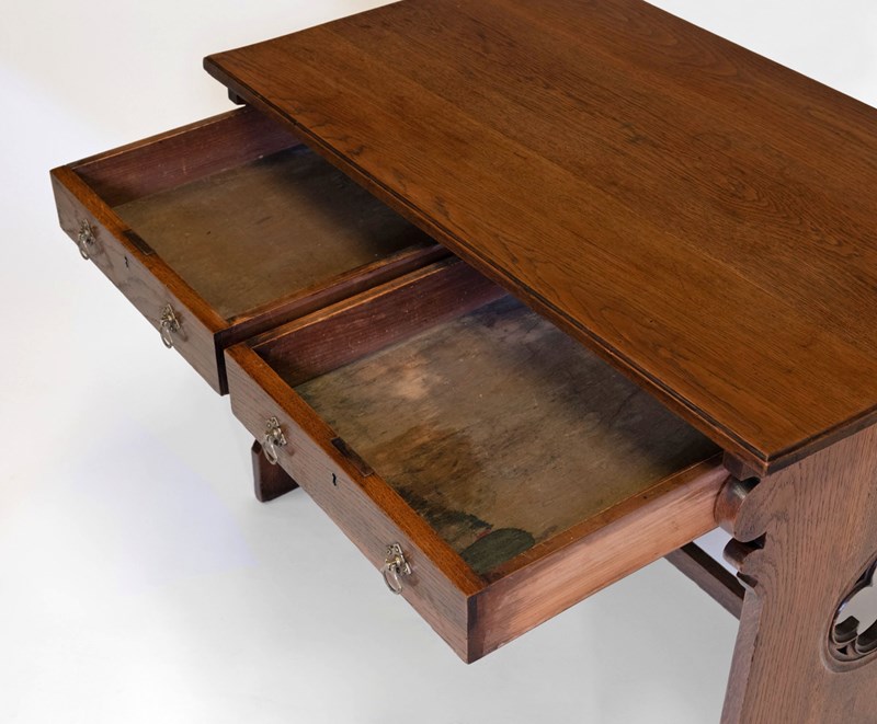 Late 19Th Century Gothic Revival Oak Two Drawer Desk Writing Table