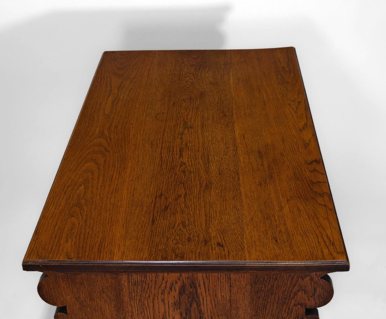 Late 19th century Gothic Revival oak two drawer desk. English. Circa 1880.