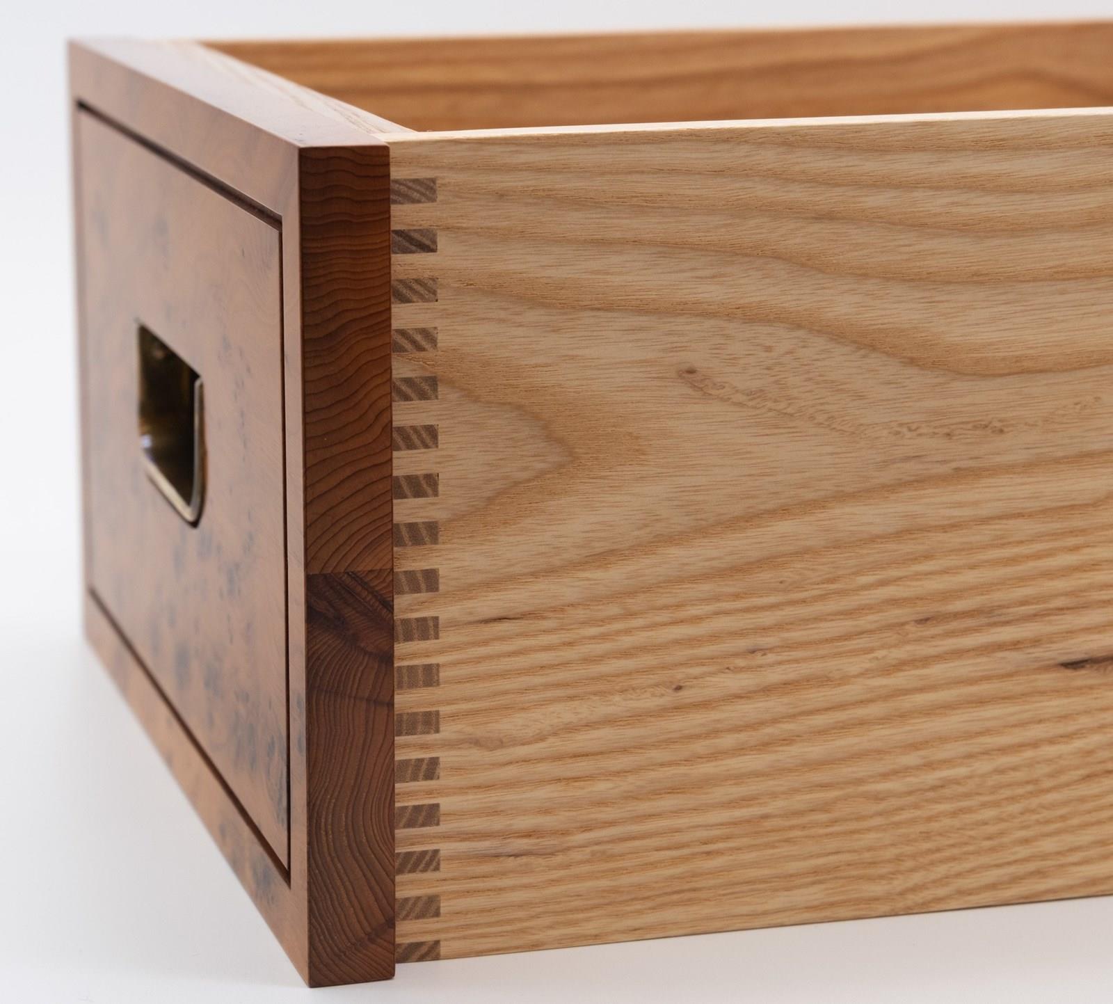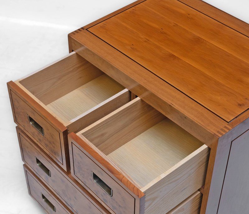 The drawers sides and backs are made in solid oak with finger joint construction to the sides of the drawers. There all work well and are very clean to the insides. The chests sit on nylon feet protectors.