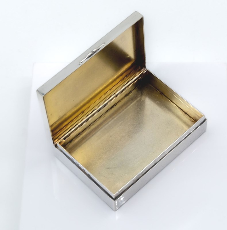 The lid opens and closes very neatly. There are some light marks with use, as expected. Reflections in the photographs may detract from the true representation of this piece.