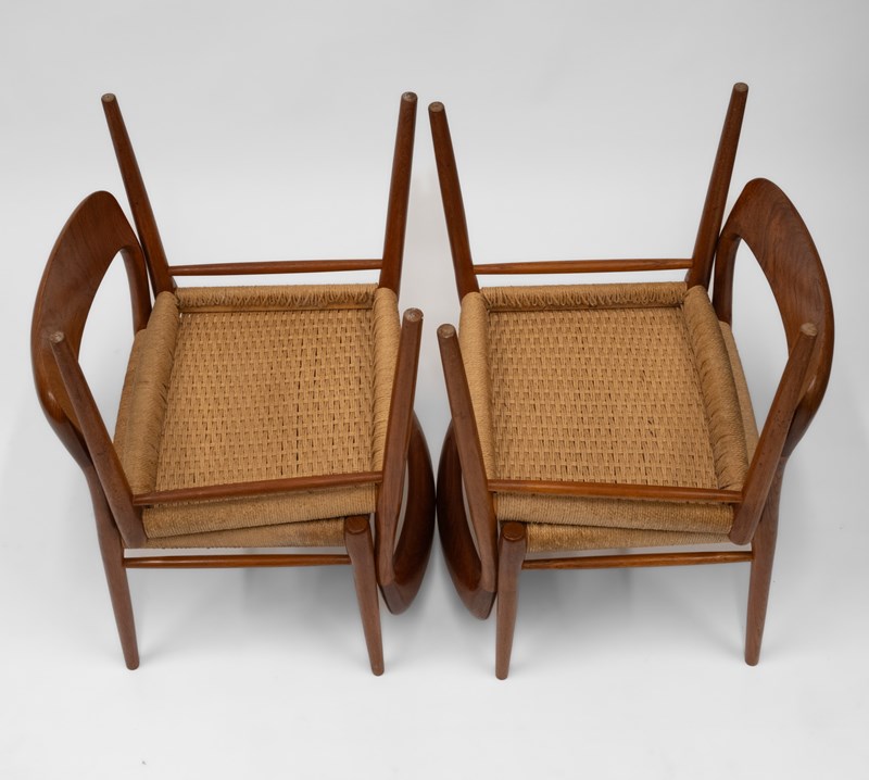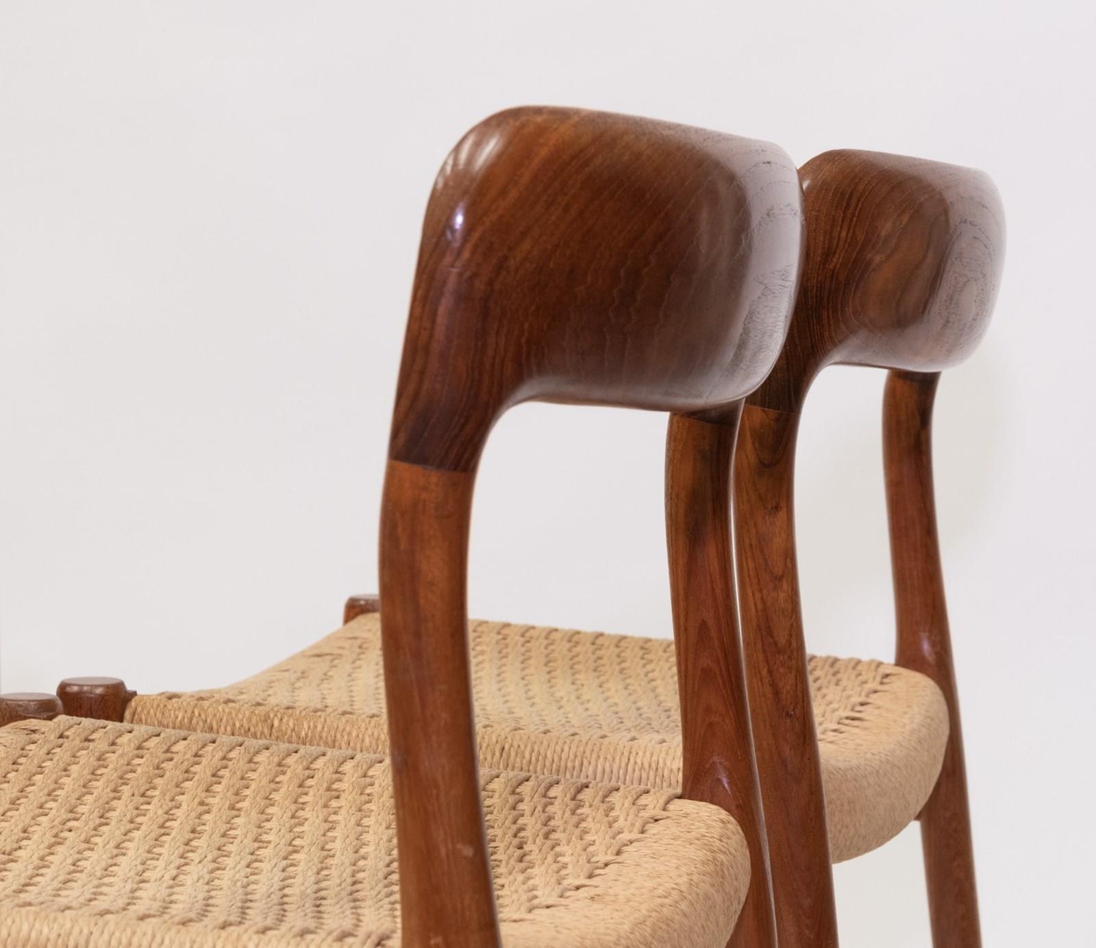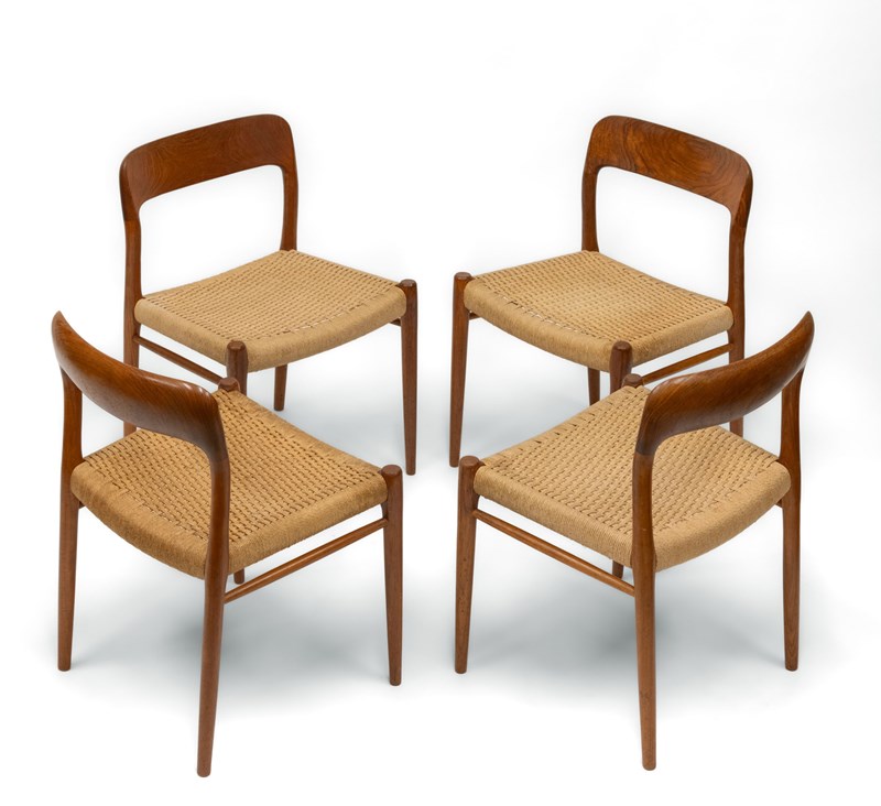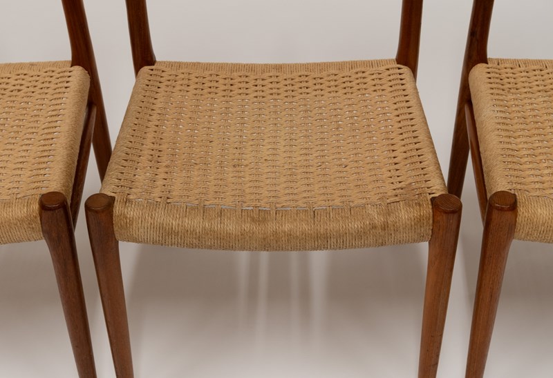 Set Of Four Niels Moller Teak & Cord Dining Chairs Model 75