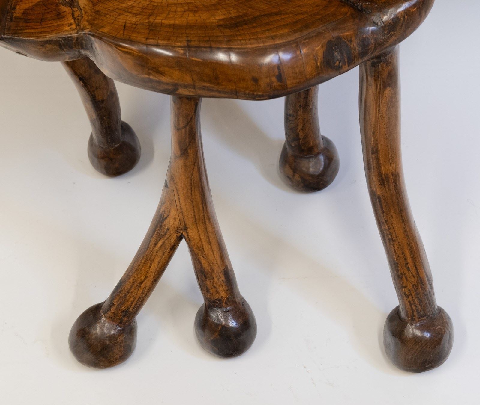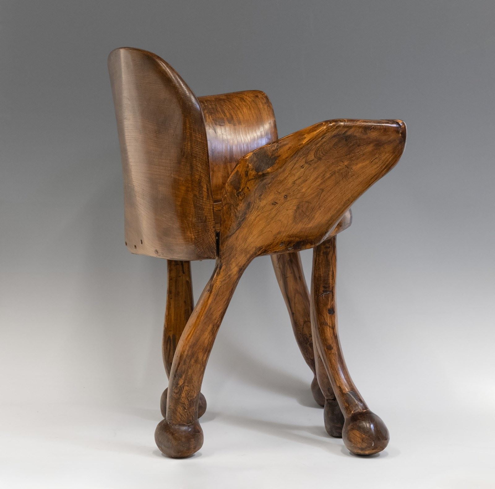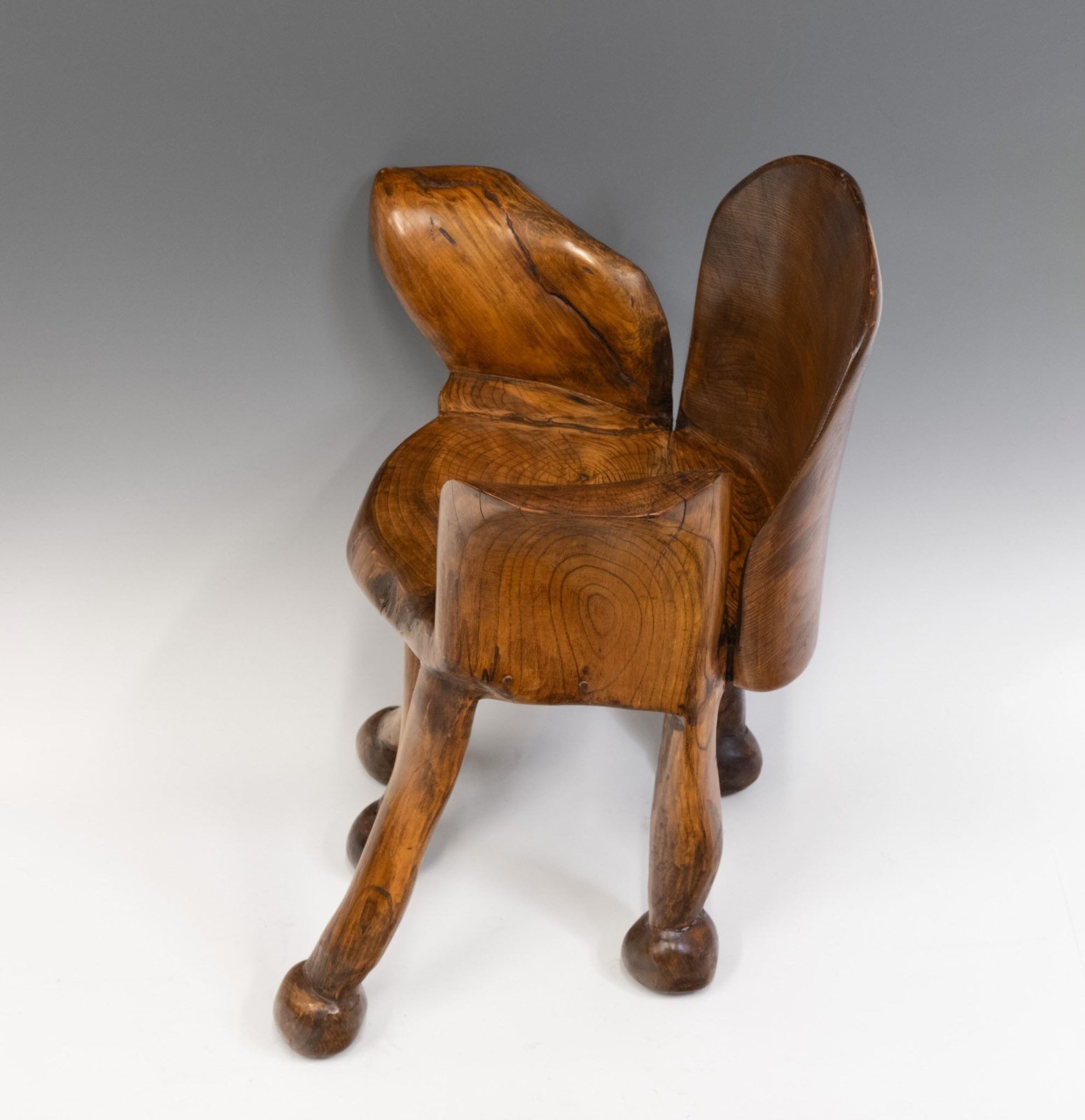 A striking example of functional art, this solid elm chair blends sculptural presence with refined minimalism. With fluid curves, rounded contours, and beautifully carved legs that split into branch‑like feet. The piece feels alive!
