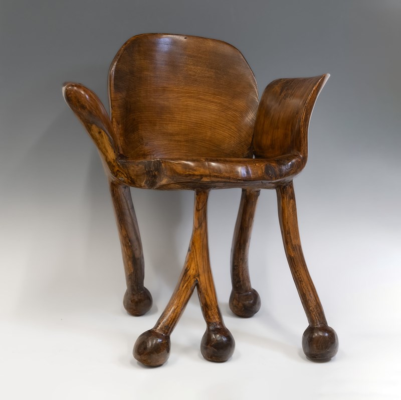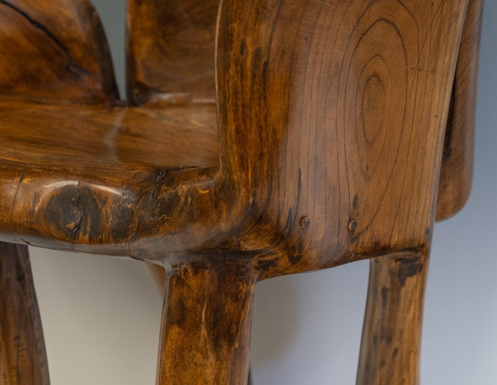 Striking Pierre Decorse Organic Sculptural Elm Wood Armchair 2001