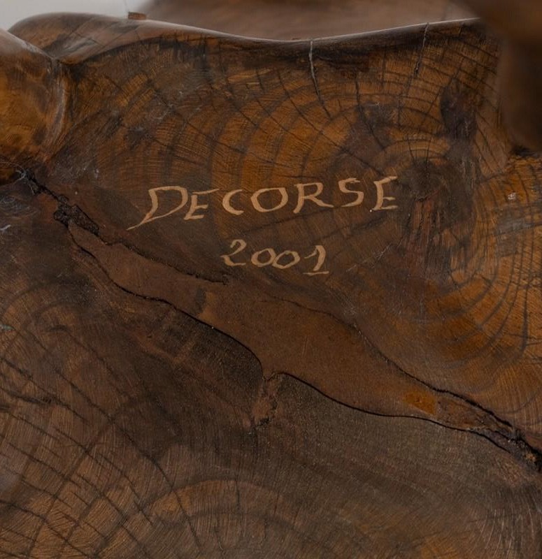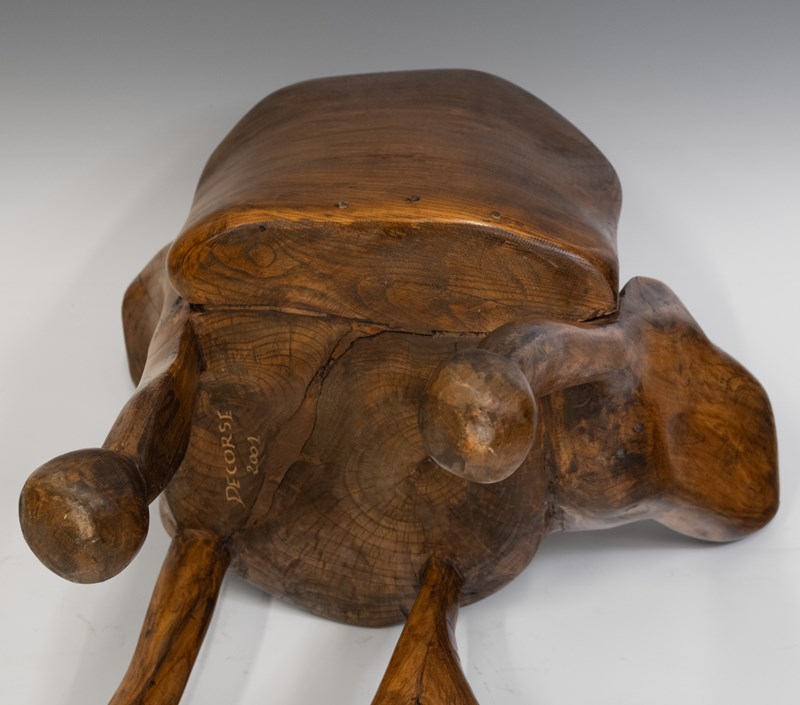 A Pierre Decorse (b1953) organic sculptural elm armchair. Signed and dated 2001.
