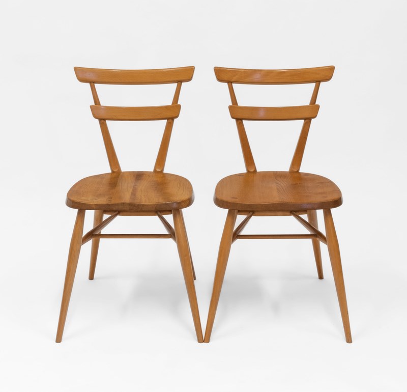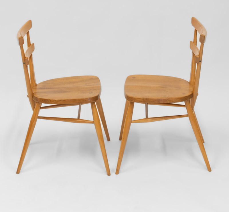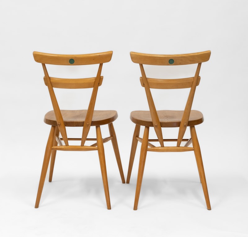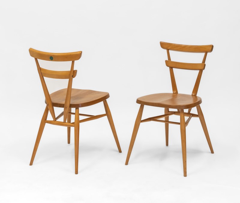 Vintage Ercol Green Spot Set Of Two Stacking Dining Chairs 1950S