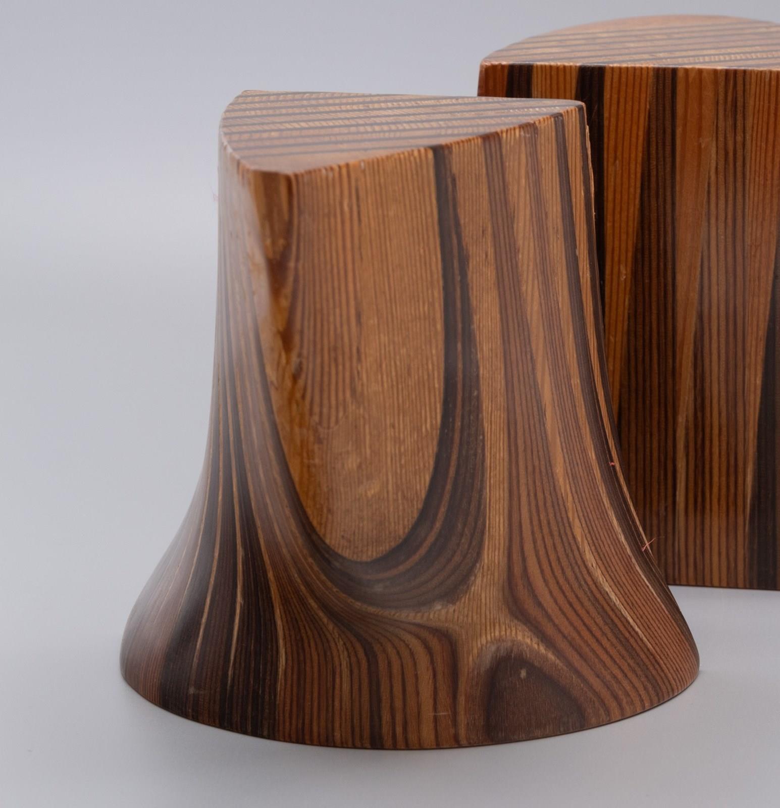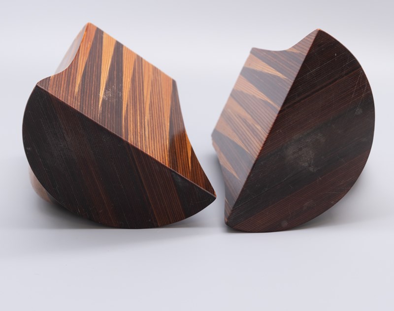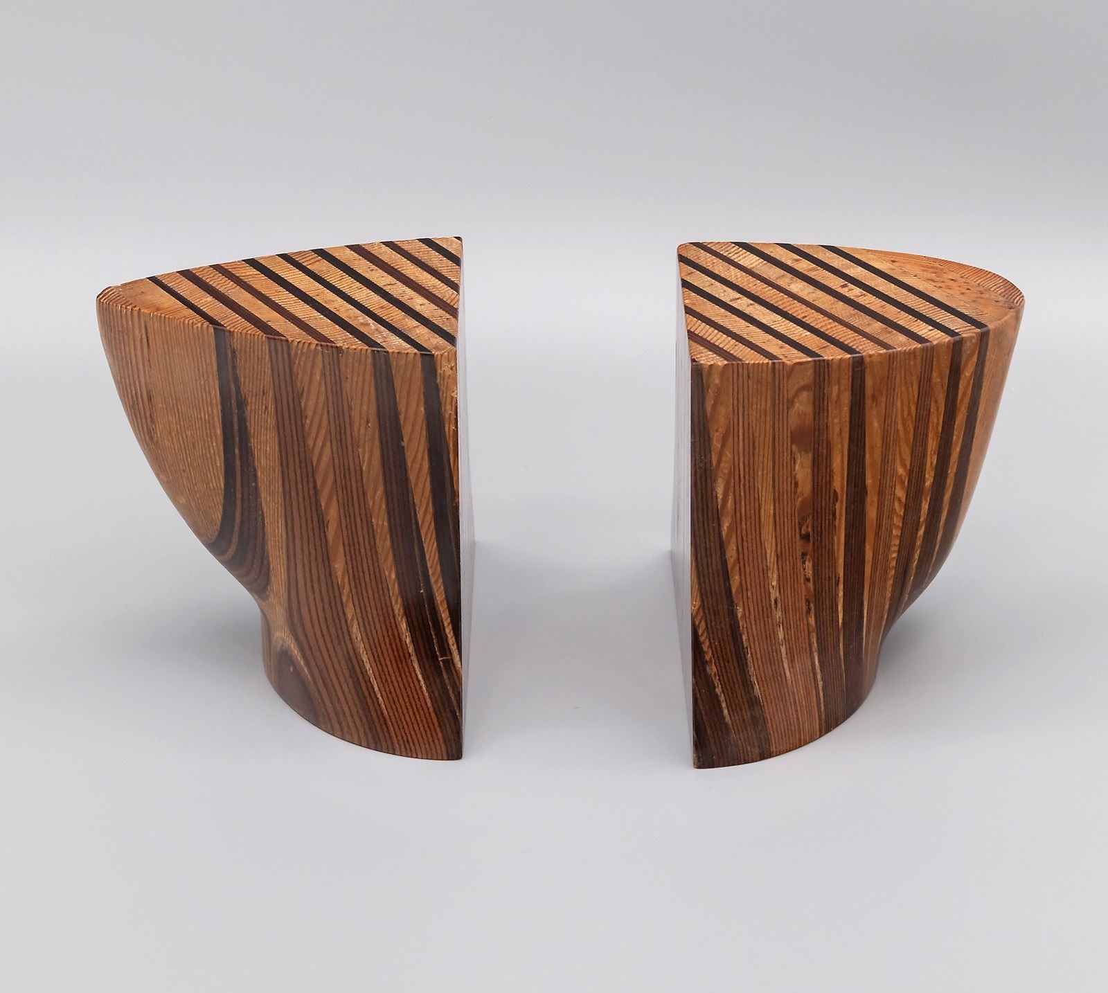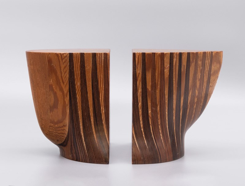 Vintage sculptural pine & pitch pine bookends. Circa 1970s.