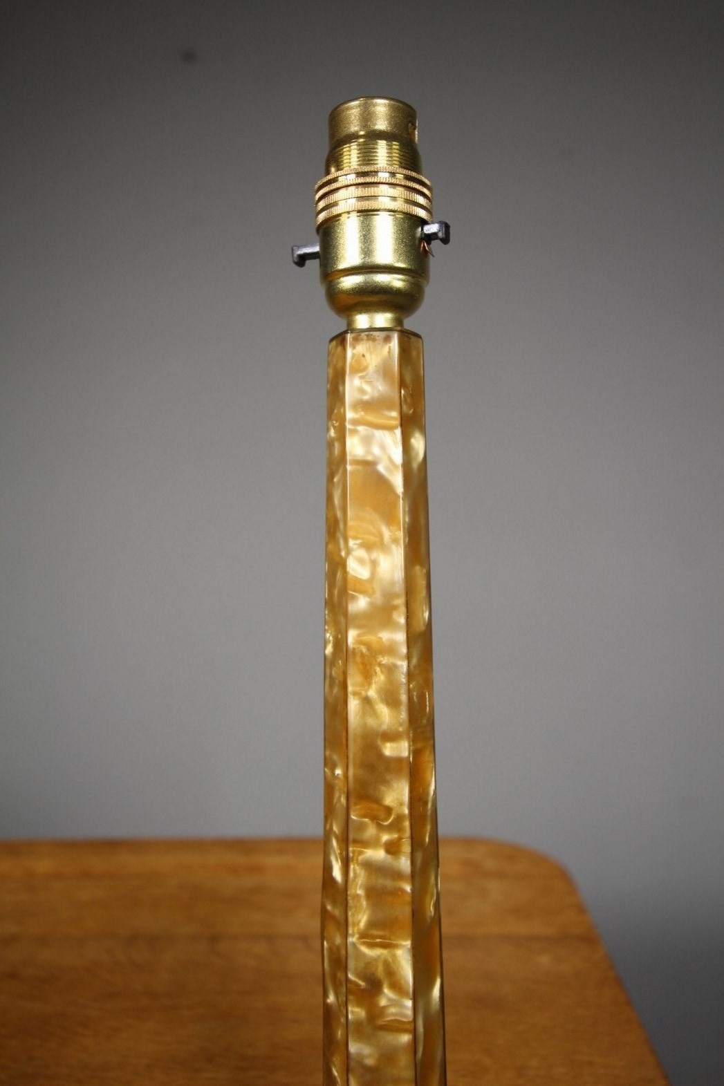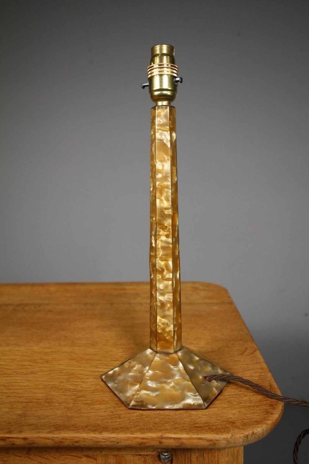 A beautiful pair English antique table lamp, very well made in faux mother of pearl. In very good condition, newly rewired and tested. Featuring tapering hexagonal stem that finish on a weighted hexagonal base. A decorative English antique table lamp. We also have a matching pair.