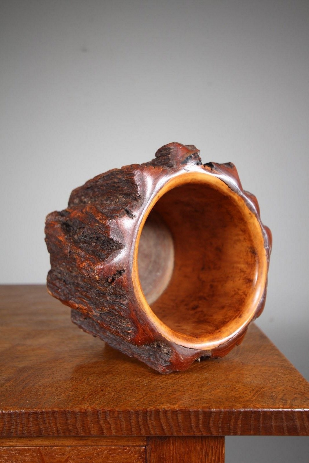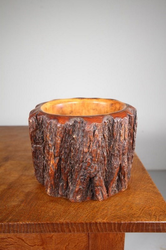 A lovely piece of antique treen, made form a hollowed out section of an exotic tree stem then polished inside and to the base. A beautiful colour and surface. Perfect to use as a bowl or a vase for a small plant.