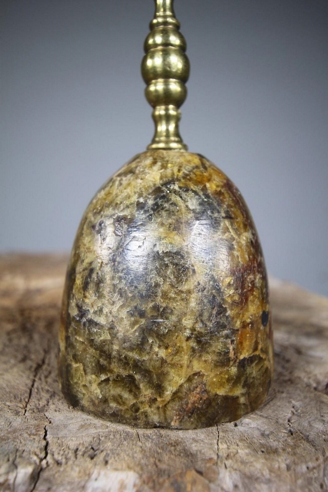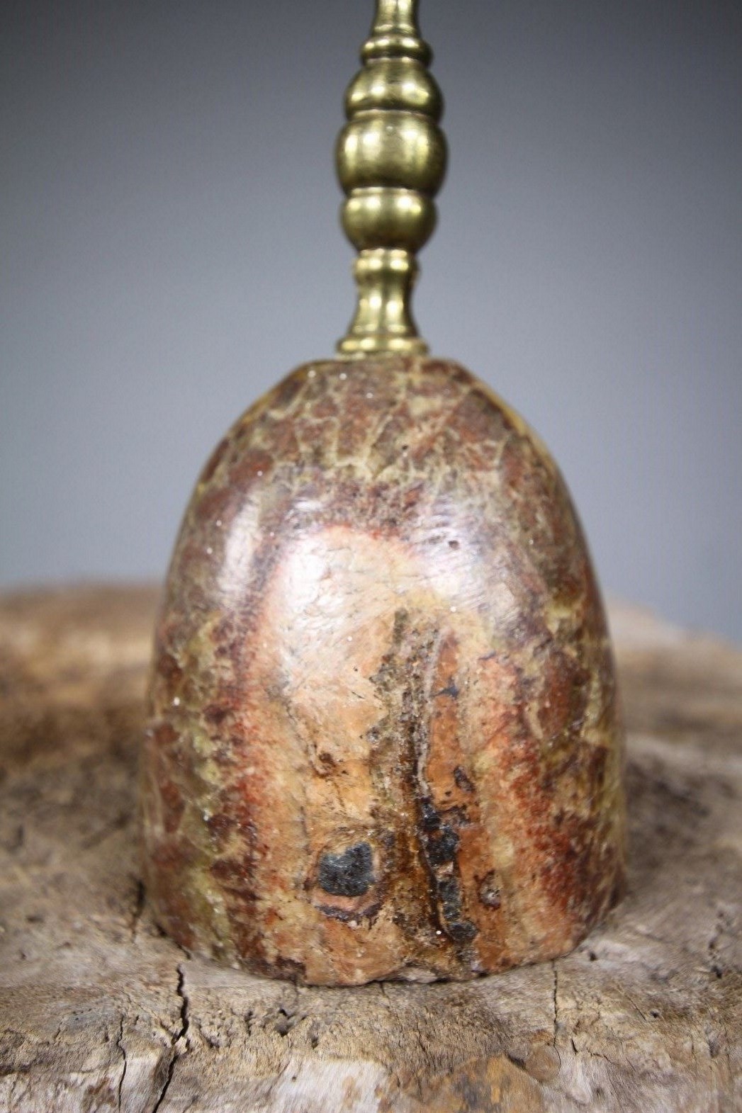 This is a wonderful English decorative door stop, made in rare Blue John Fell Spa semi – precious stone from Derbyshire that dates to the thirties. In excellent condition and with a turned brass carry handle.