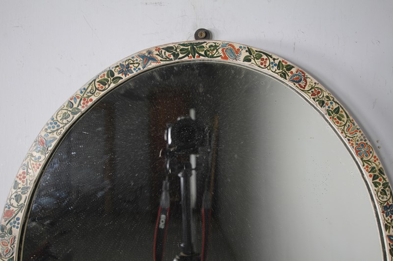 Beautiful English Antique Hand Painted Oval Mirror