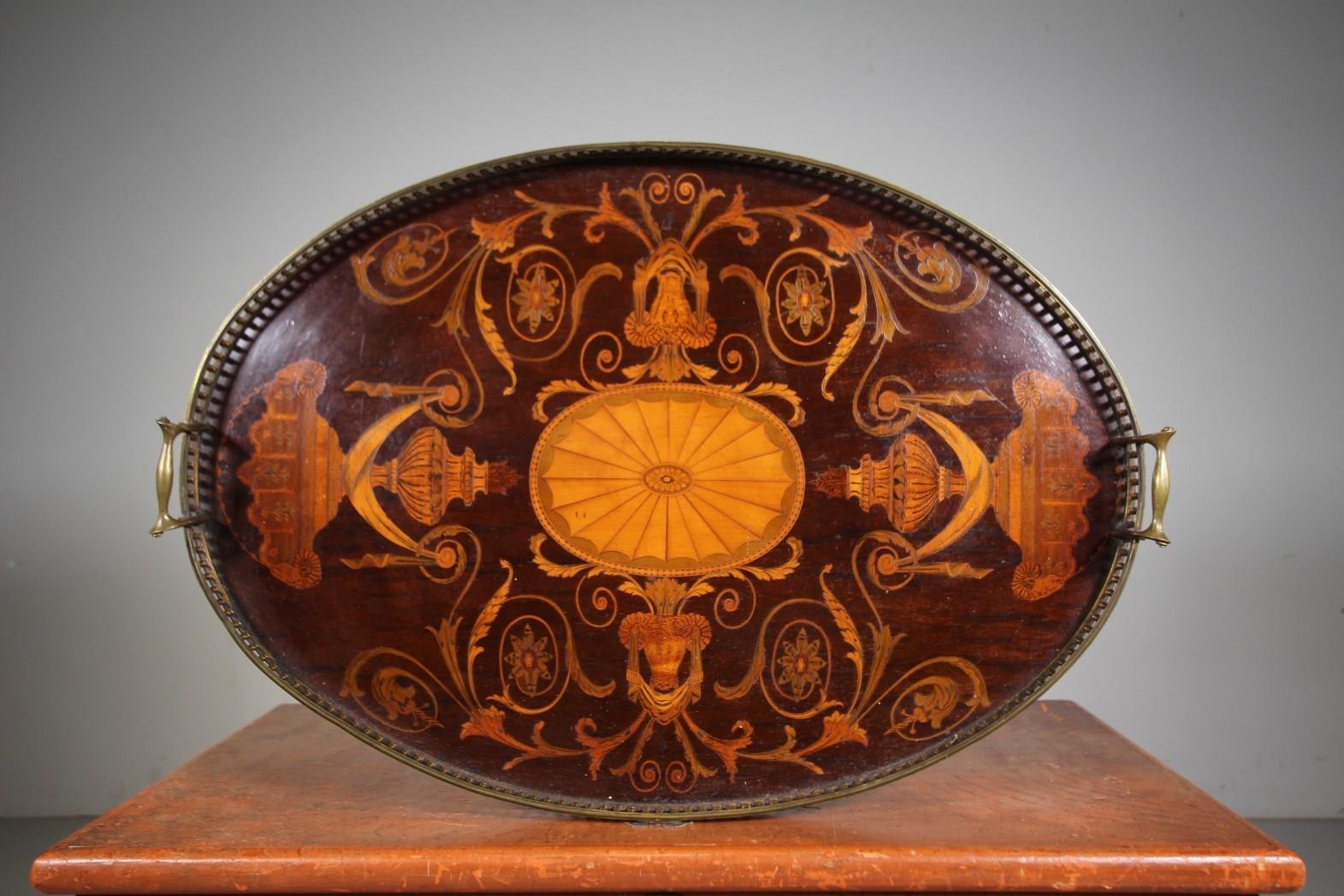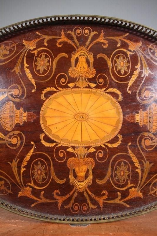 Beautiful Finely Inlaid English Antique 19Th Century Tray