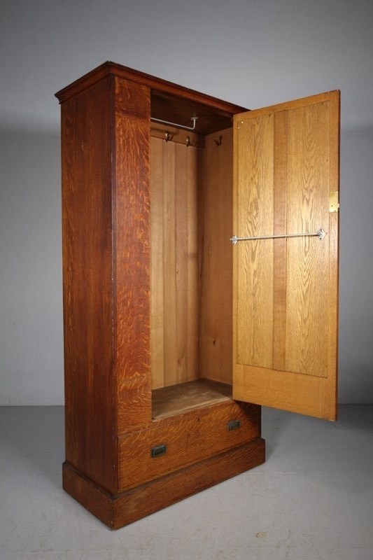 Early Heals Edwardian Antique Oak Wardrobe – Labelled