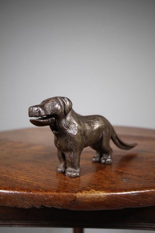 In full working strong condition, this is a lovely English antique nutcracker in the form of a dog, stamped with the Patent number and made in England and still in the original bronzed finish. Far nicer than the model ones. English and dating to around 1890.