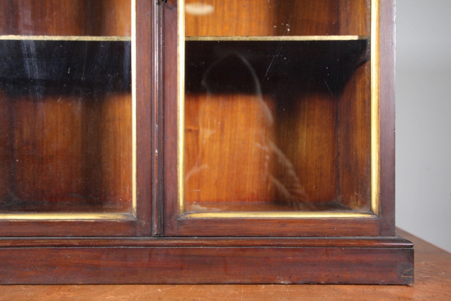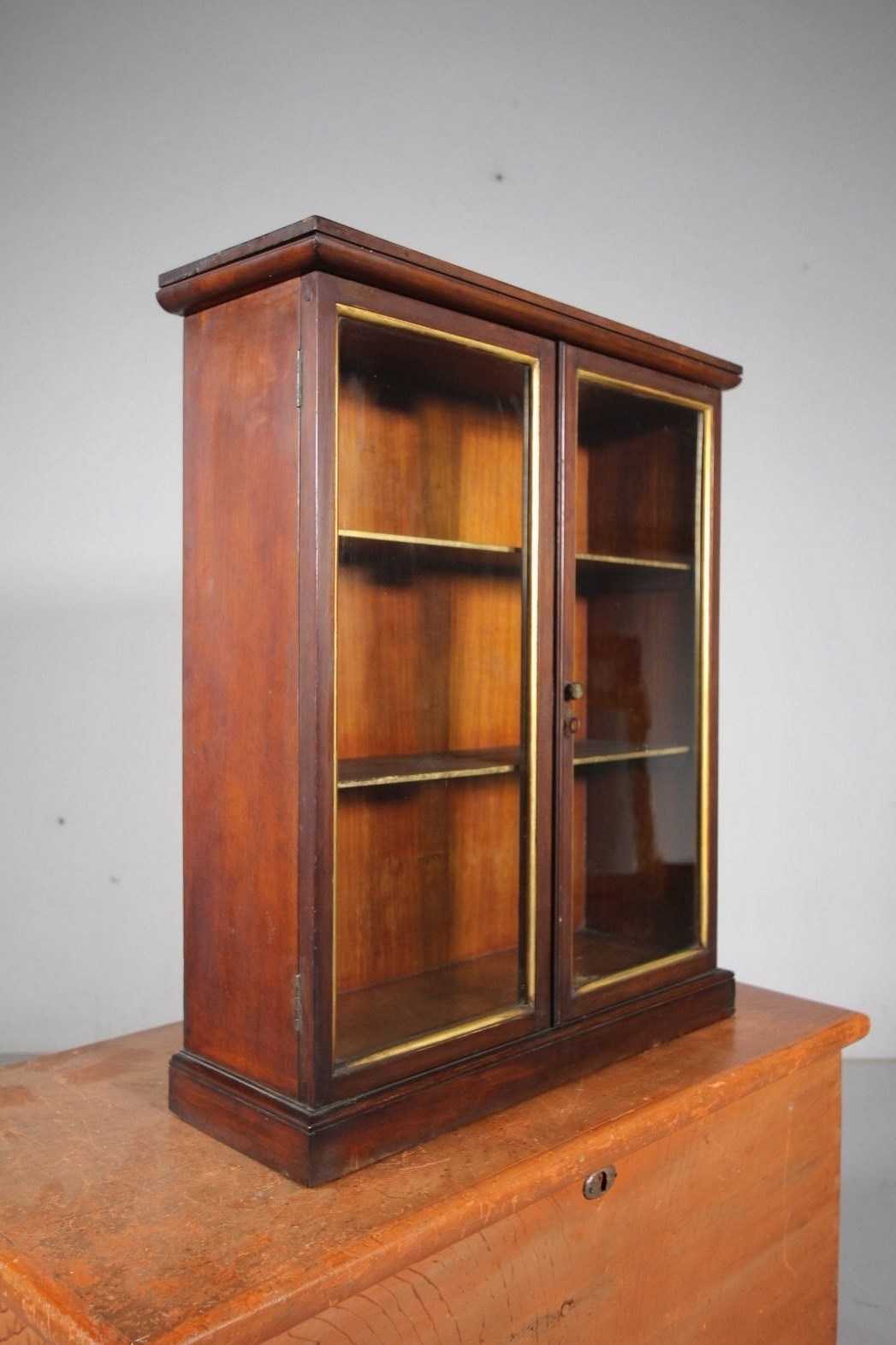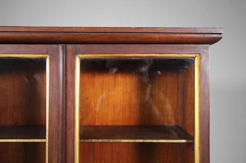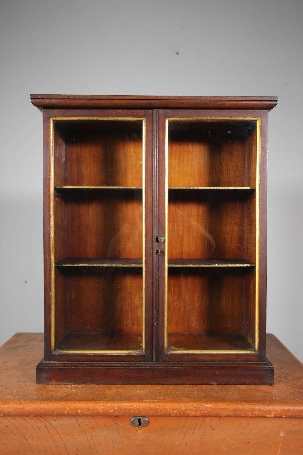 A finely made English antique walnut wall cabinet that has lovely original wobbly clear glazed doors that have the original gilt slip mouldings. In excellent clean condition and in the original finish. Featuring a moulded cornice with a square plinth to the bottom. Inside is shelved with polished original backboards. Dates to around 1870, perfect for a bathroom.