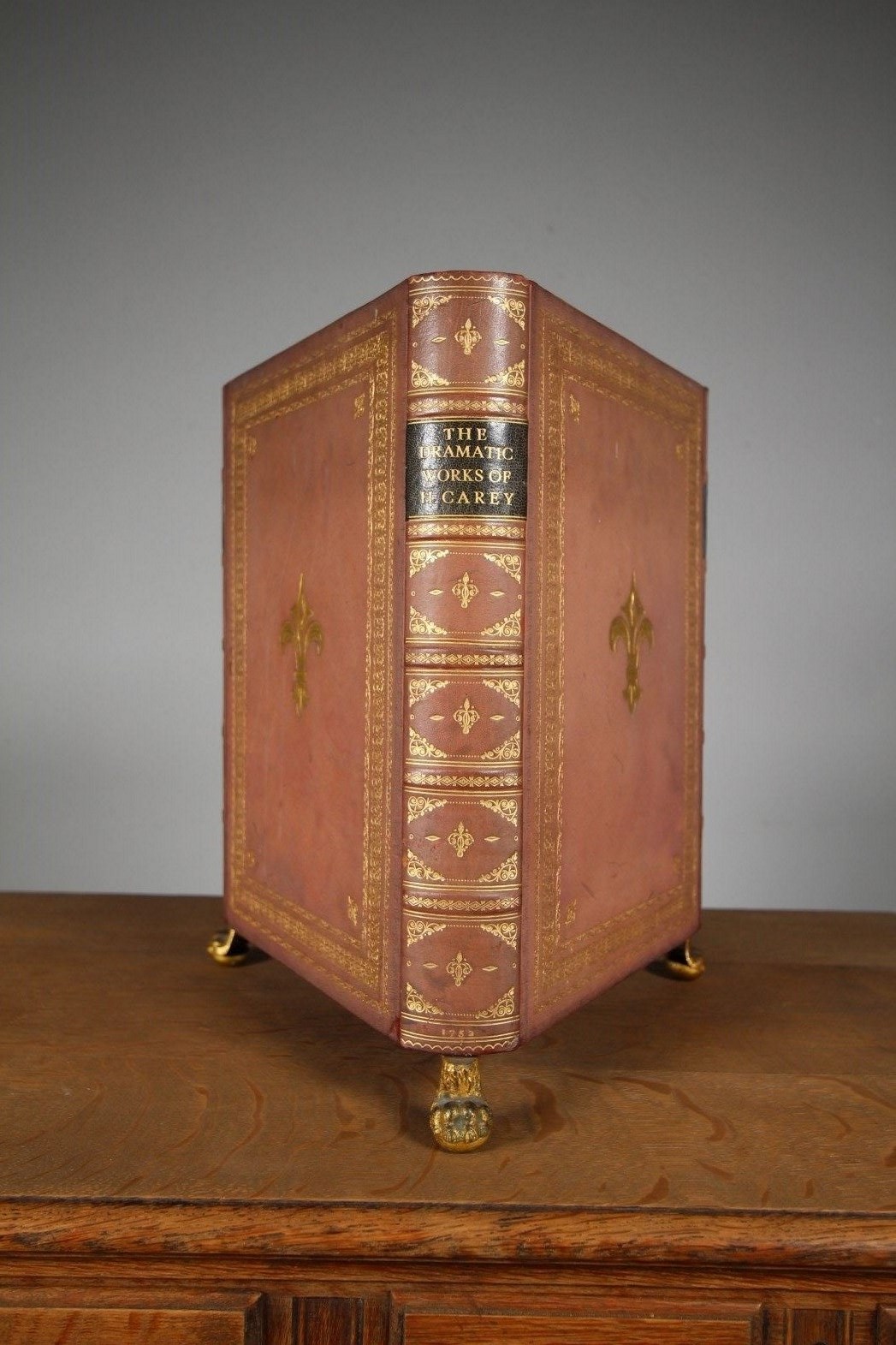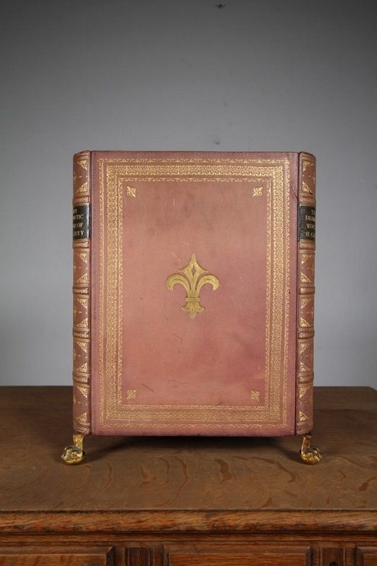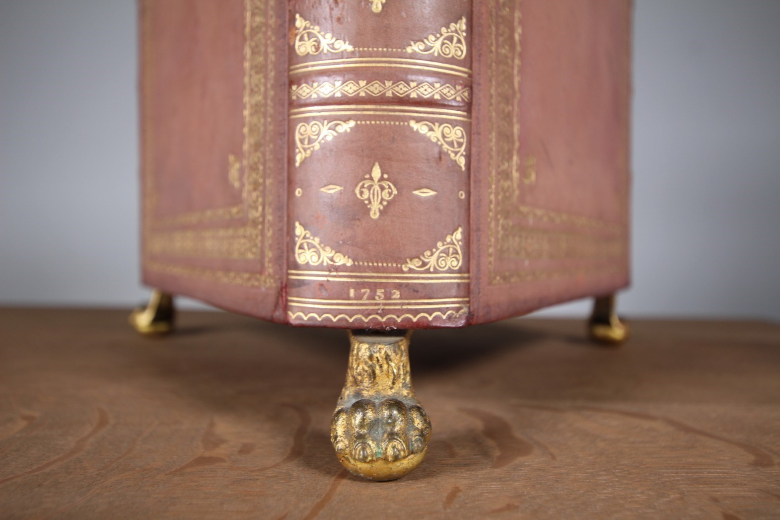 This is a high quality English antique leather paper bin with finely gilt tooled decorations with book type corners. Three sided in shape and standing on original brass lion's paw and ball feet. In excellent condition, a lovely Country House library or office antique leather paper bin. Dates to around 1880.