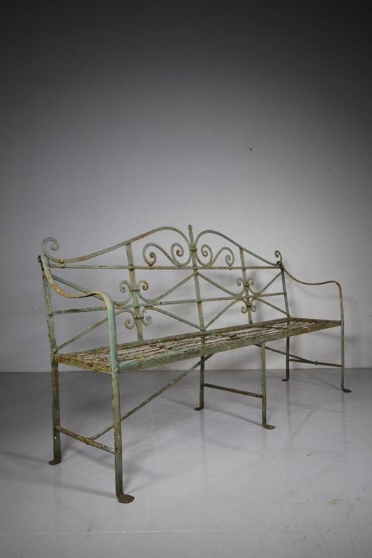 English Regency Antique Wrought Iron Reeded Garden Bench – Best Model