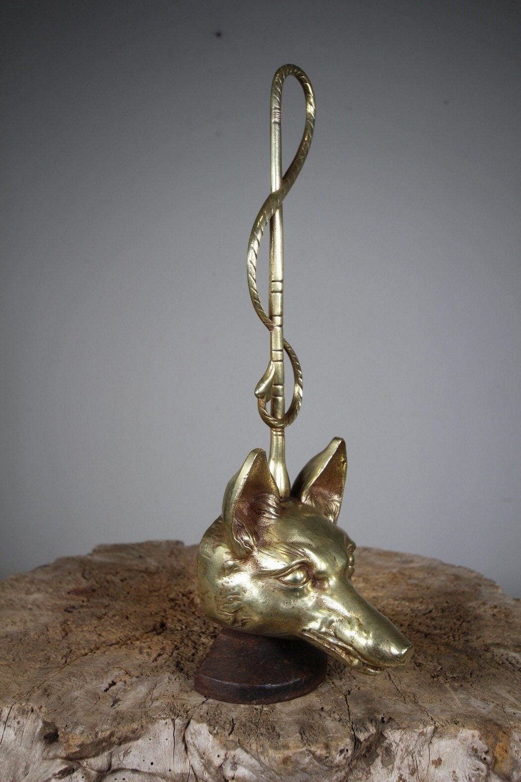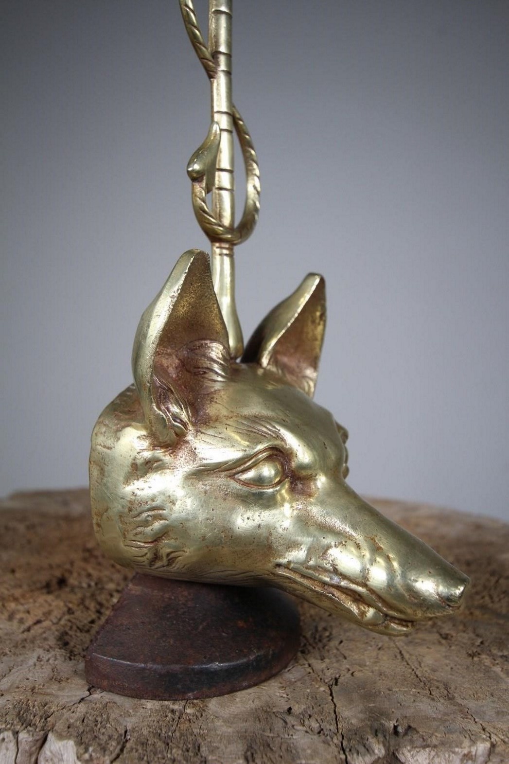 Fox Head & Whip Antique Cast Brass Quality Door Stop