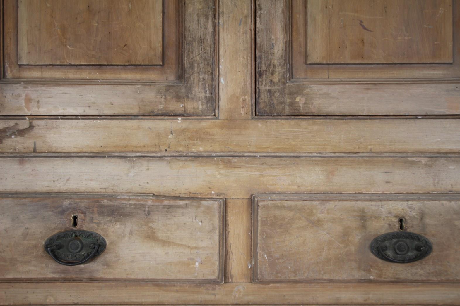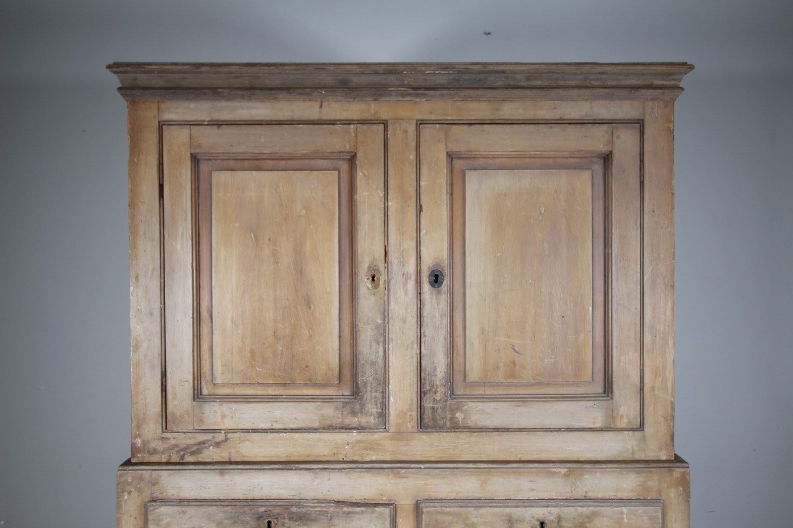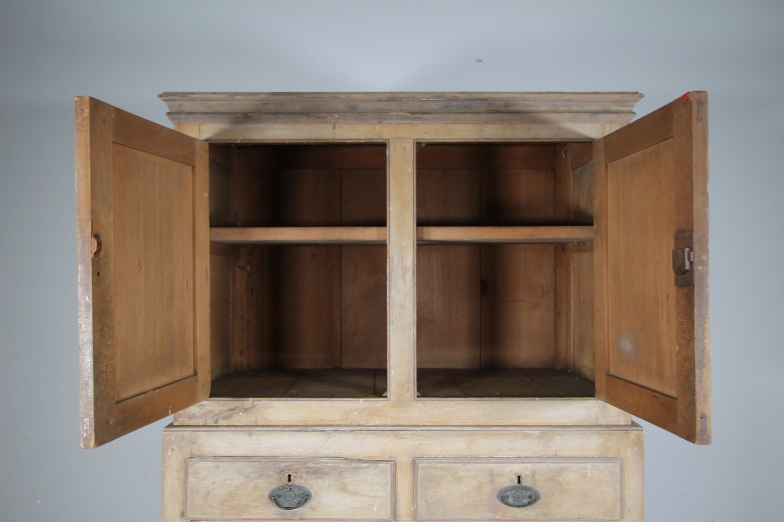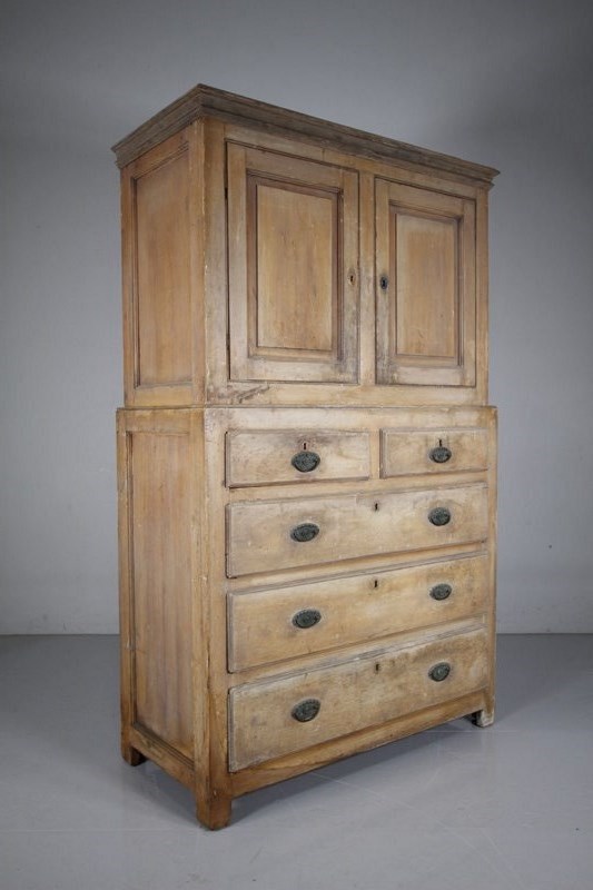 Georgian Cumbrian Antique Linen Press Cupboard in Original Cream Paint