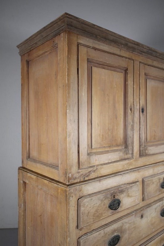 Georgian Cumbrian Antique Linen Press Cupboard In Original Cream Paint