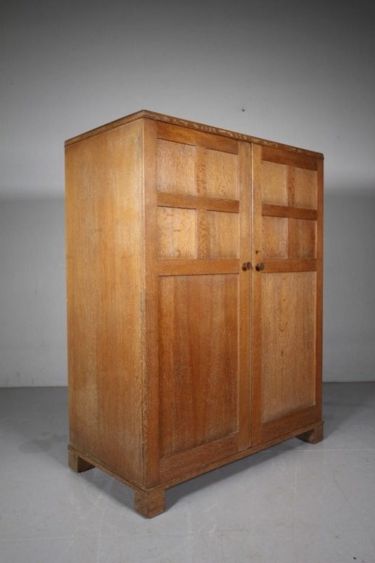 Heals 1920’S Quality Oak Low Wardrobe – Labelled