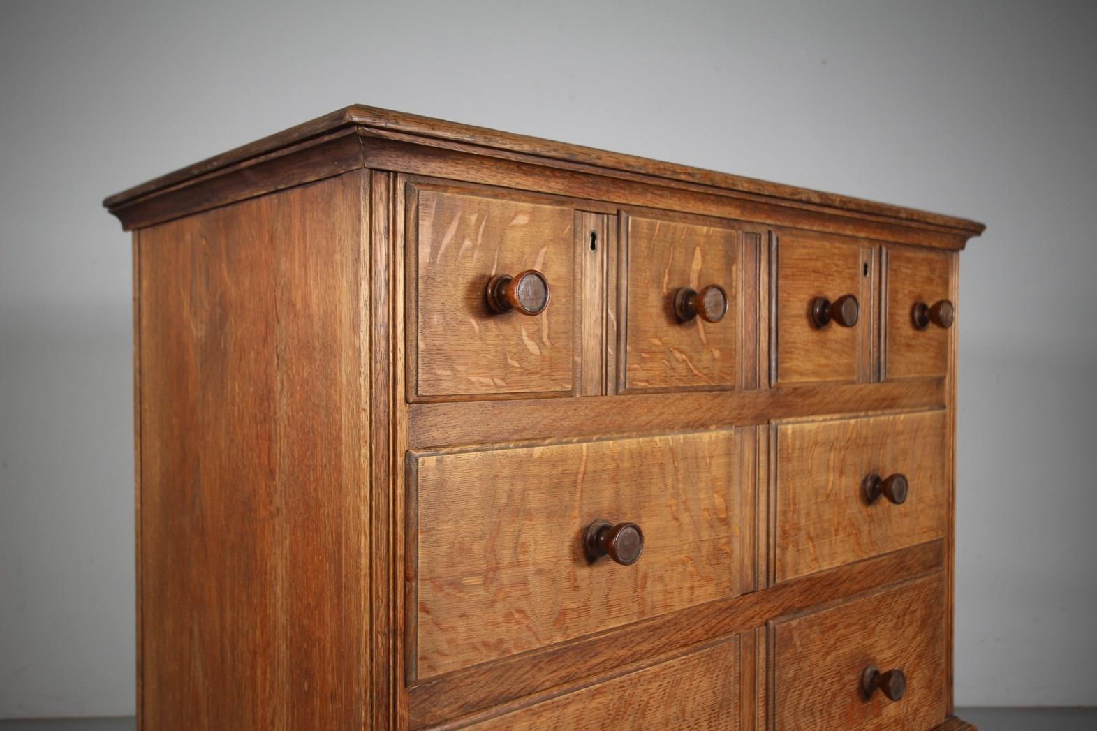 Heals Antique Oak Chest of Drawers on Stand – Labelled