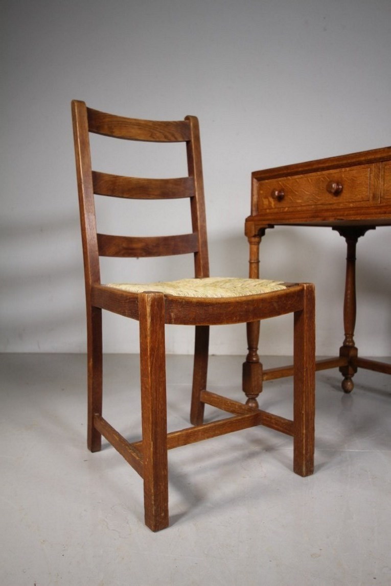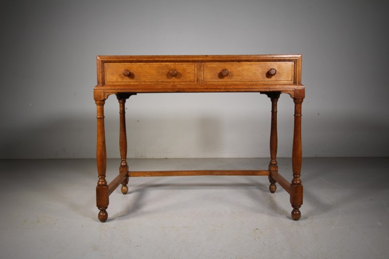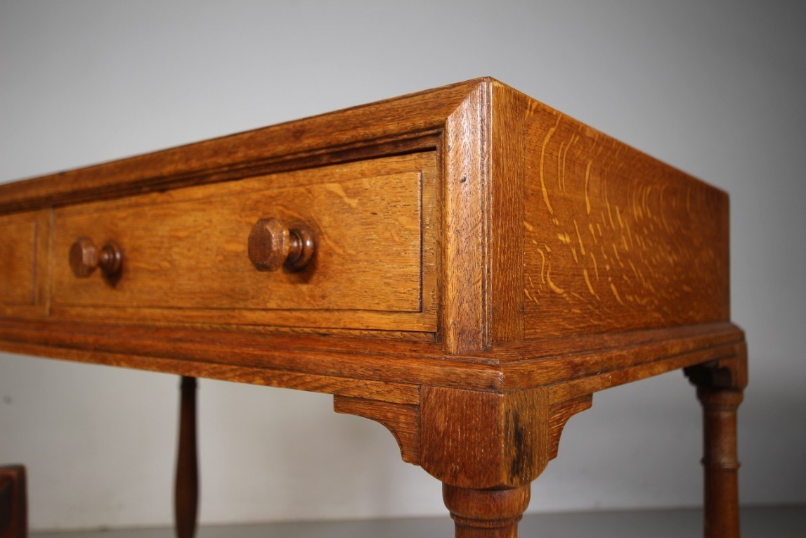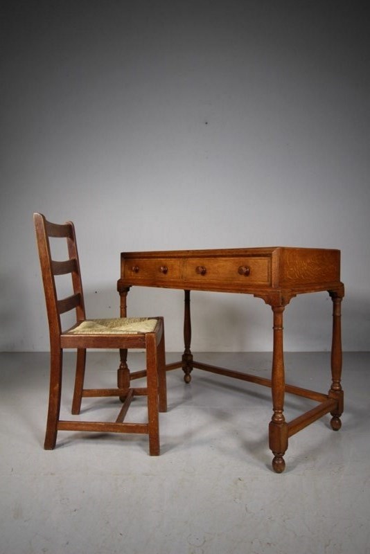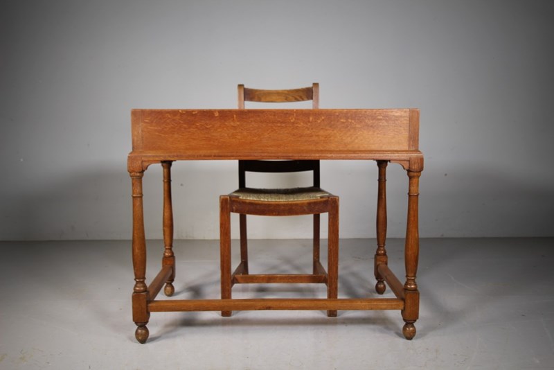 Heals Edwardian Antique Oak Writing Table & Matching Chair