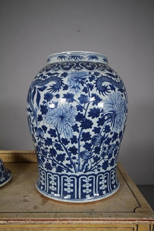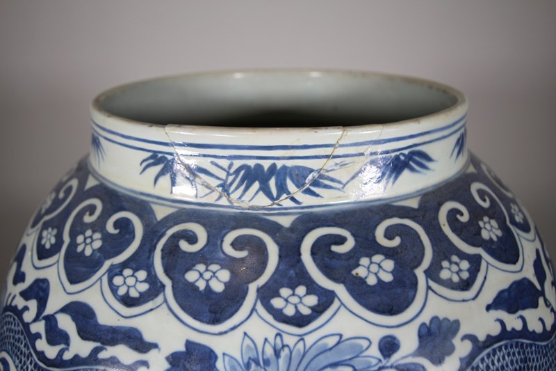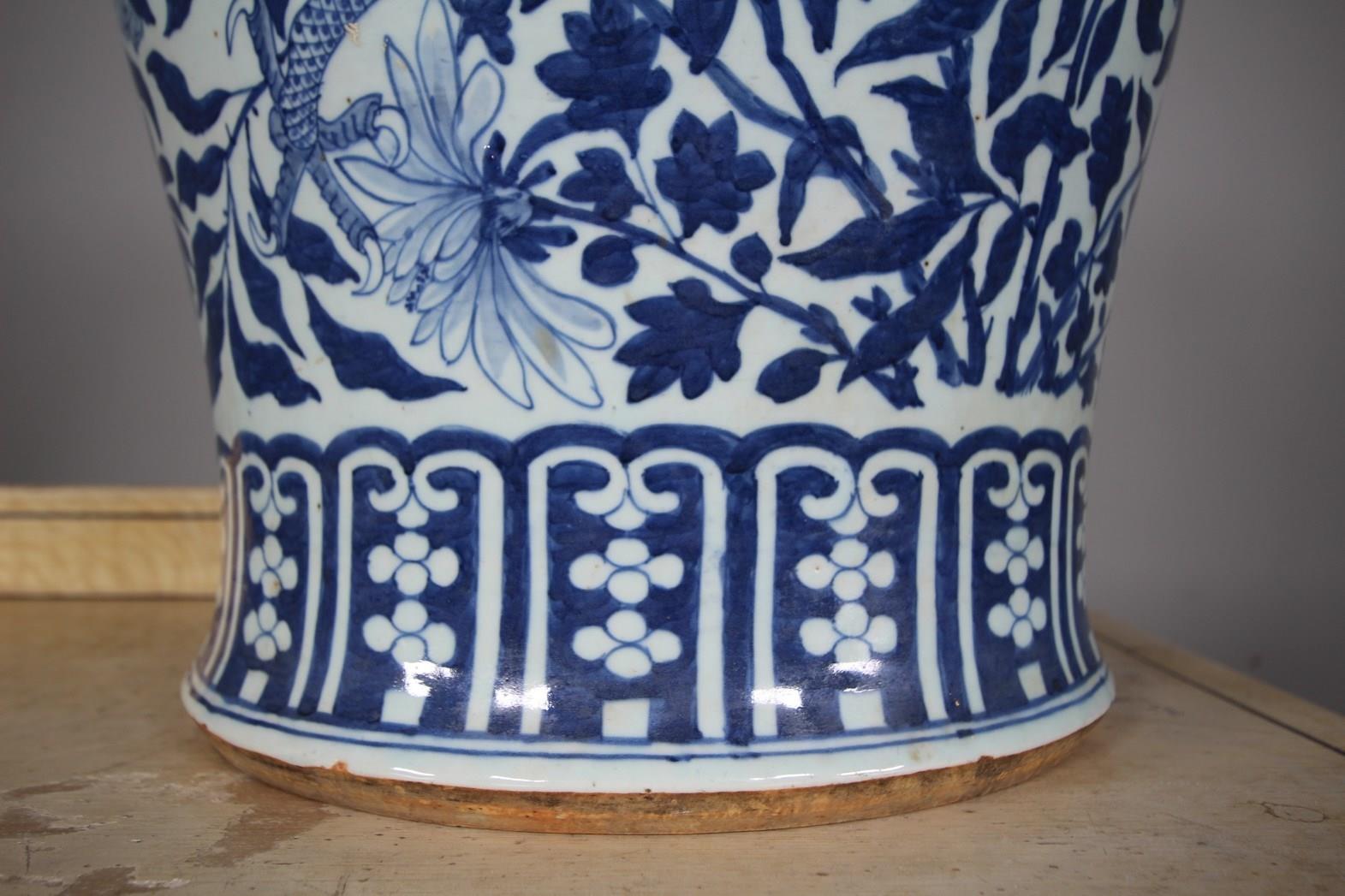 Huge 19th Century Antique Chinese Blue & White Temple Jar & Lid