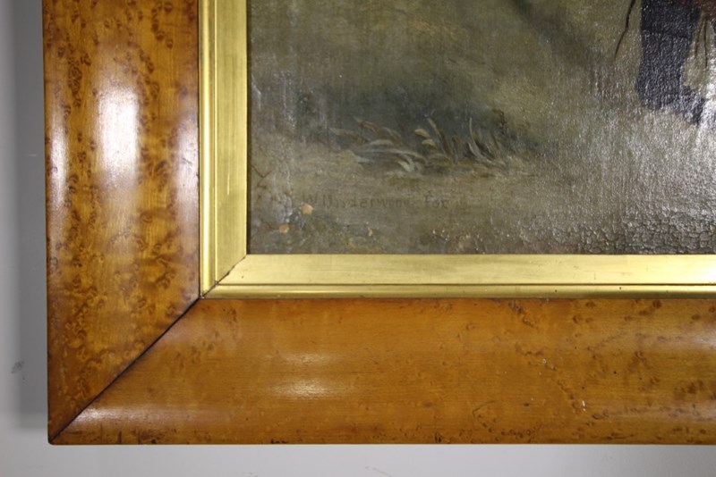 Large 19th Century Antique Country Scene Oil Painting in Maple Frame