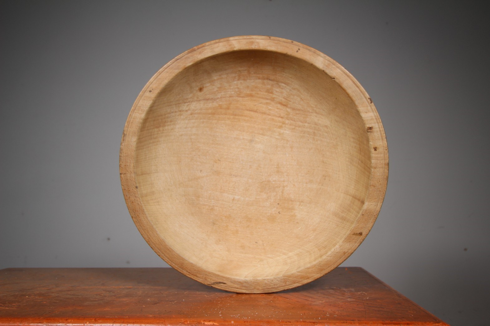 This is a beautiful, large English antique sycamore turned dairy bowl that is a lovely example with no worm or splits. Underneath you can see the wonderful decorative ring turning lines. In excellent condition, dates to around 1840, perfect for table top display.