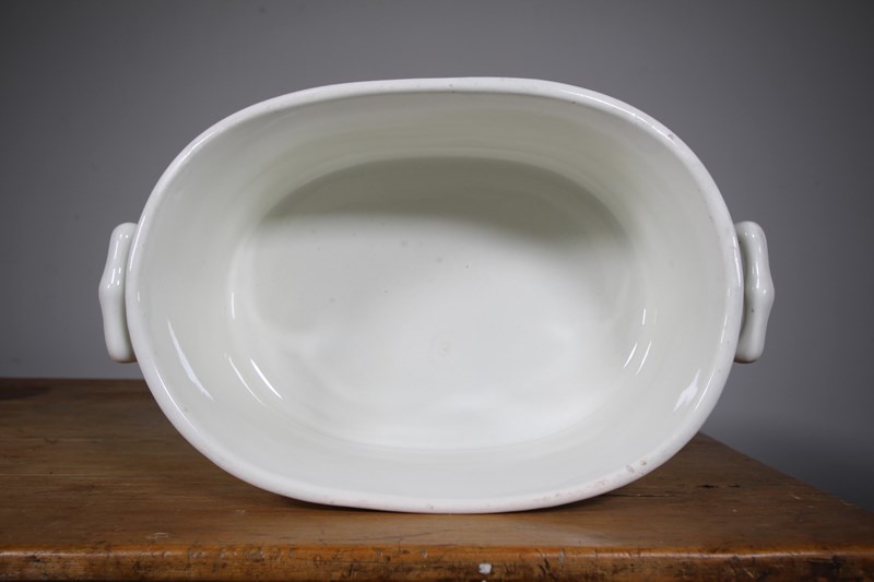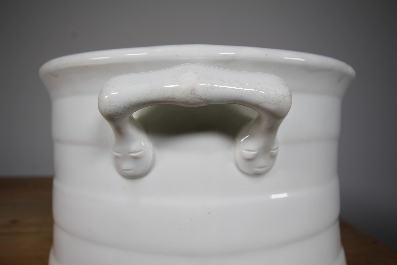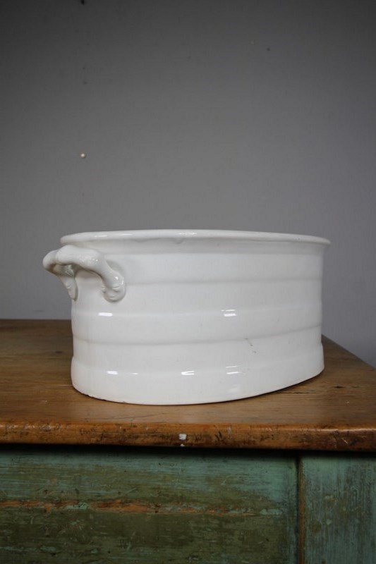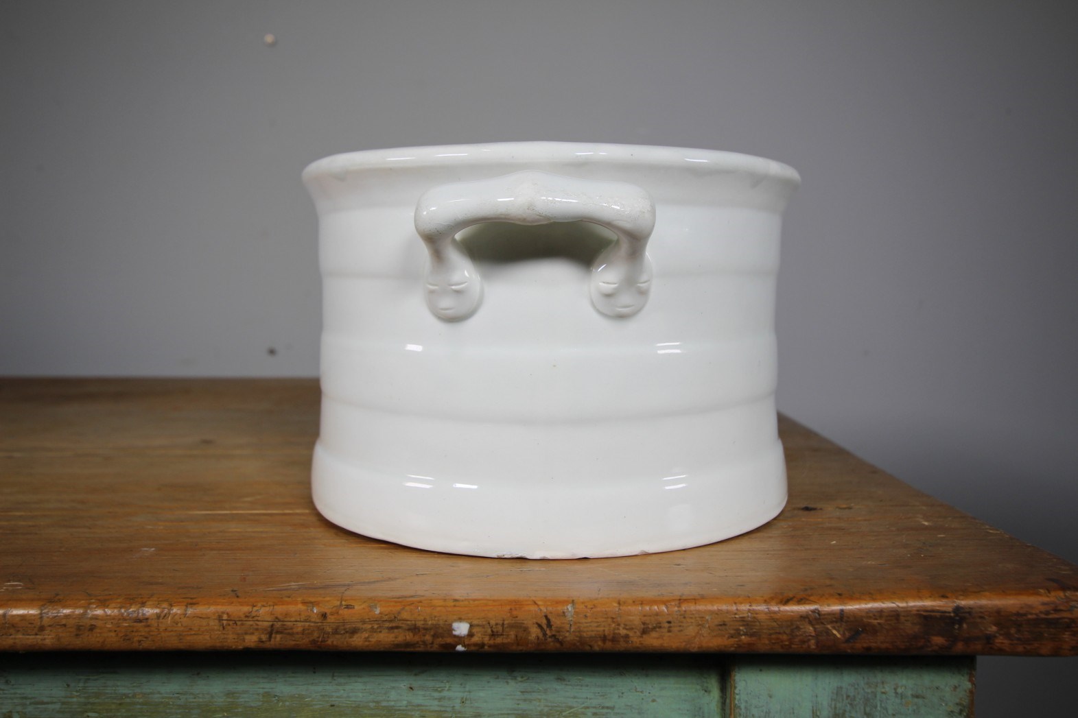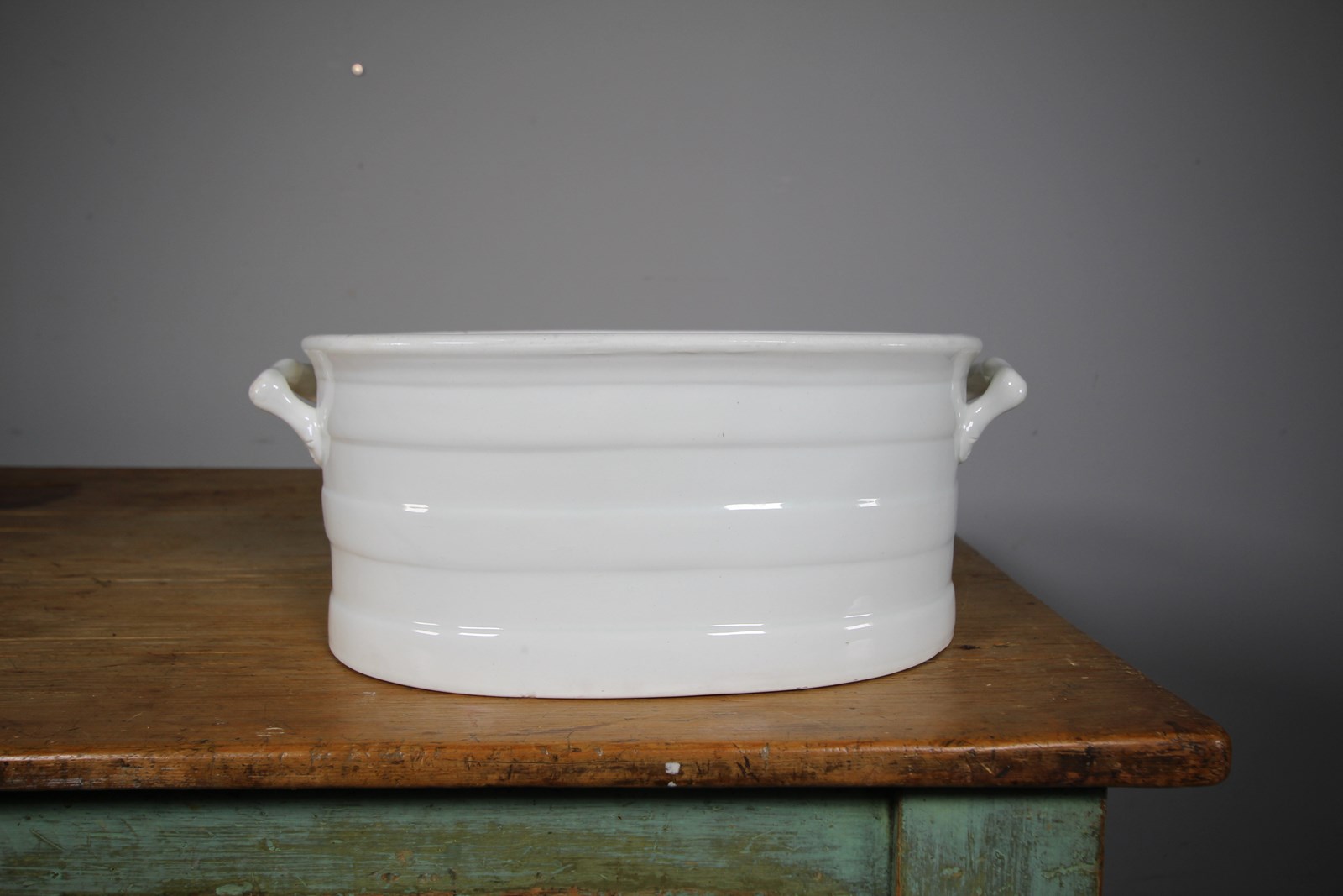This is a fabulous, large scale English antique creamware foot bath that is in superb condition with no damage at all. Featuring lovely banding to the outer with more unusual faux screw heads attaching the handles to the bath body. A very decorative 19th century antique footbath, in such super condition. Ideal to use for plants, flowers as well as feet.