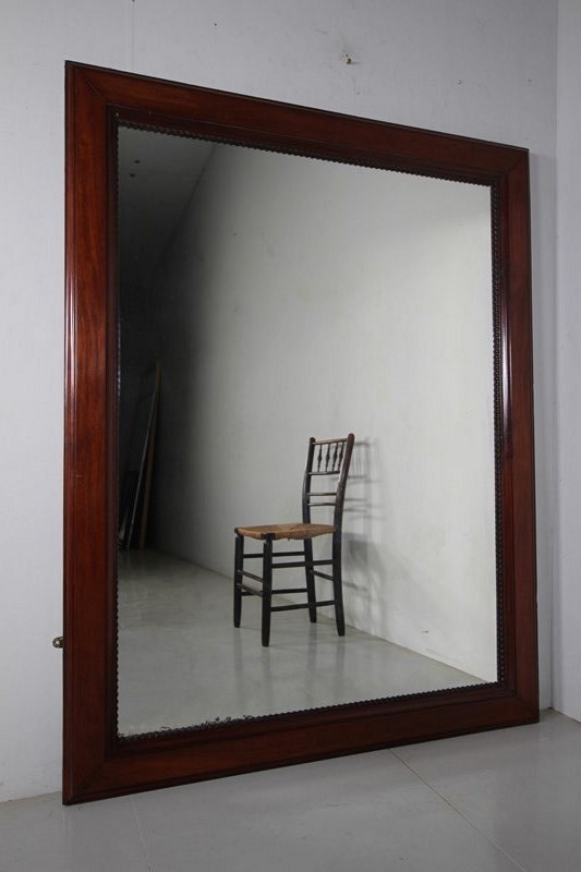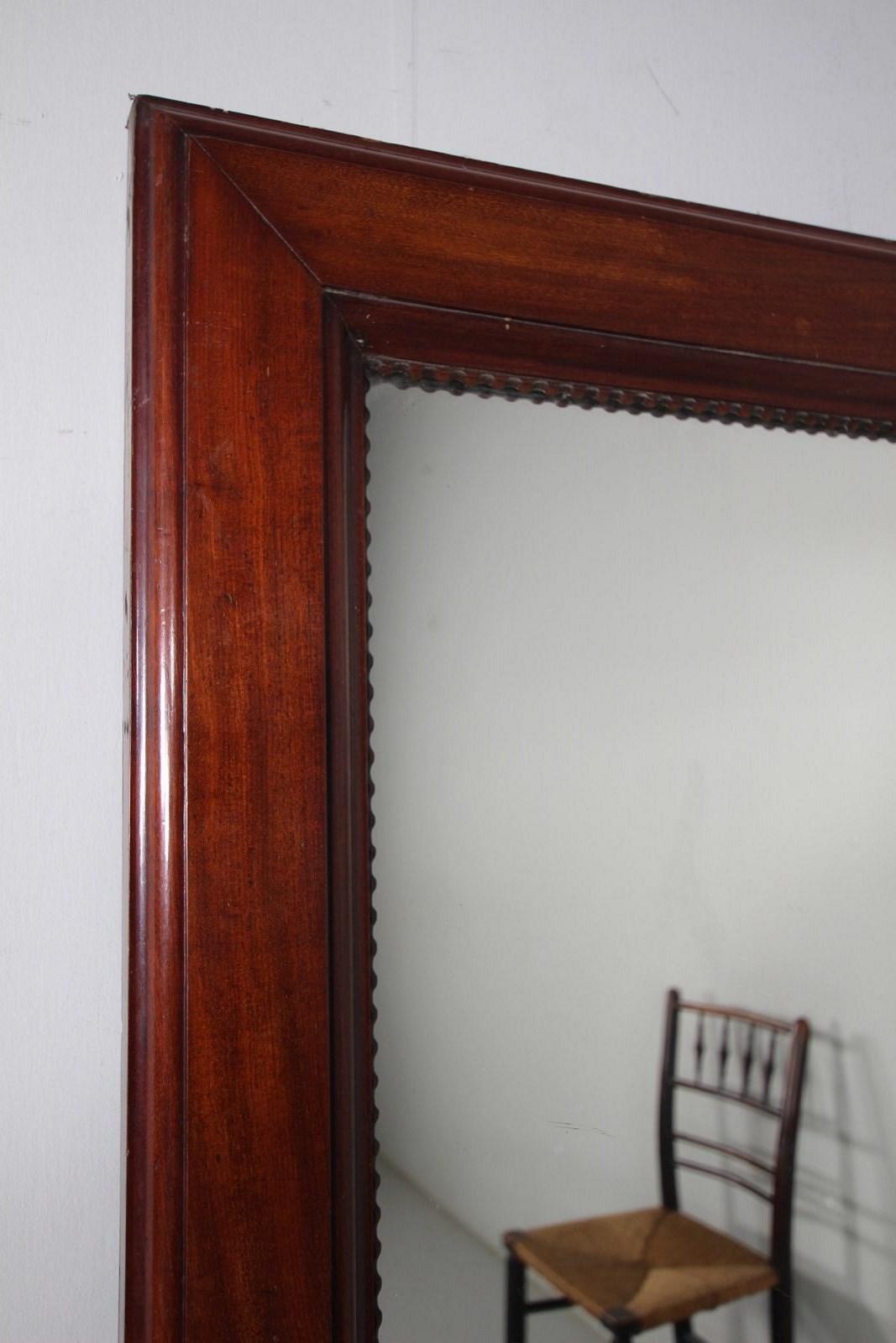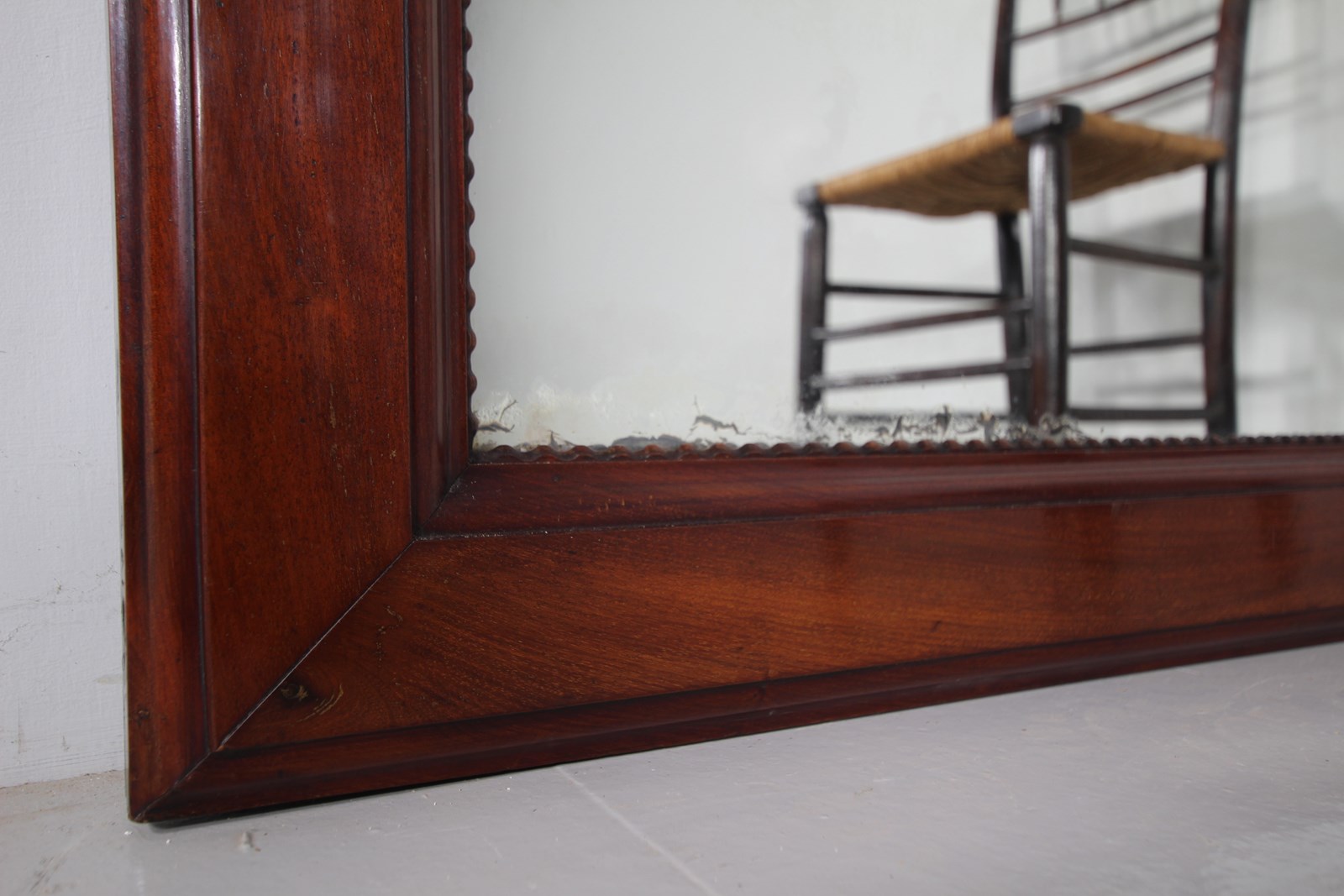 A top quality English antique large scale mahogany wall mirror, made using the best Cuban mahogany which is a fabulous original colour. Can be hung both portrait and landscape ways, this antique wall mirror has a lovely wavy edge inner slip and is complete with the original quality mirror plate and original wide pine back boards. In excellent condition, great size, and dates to around 1830-40.